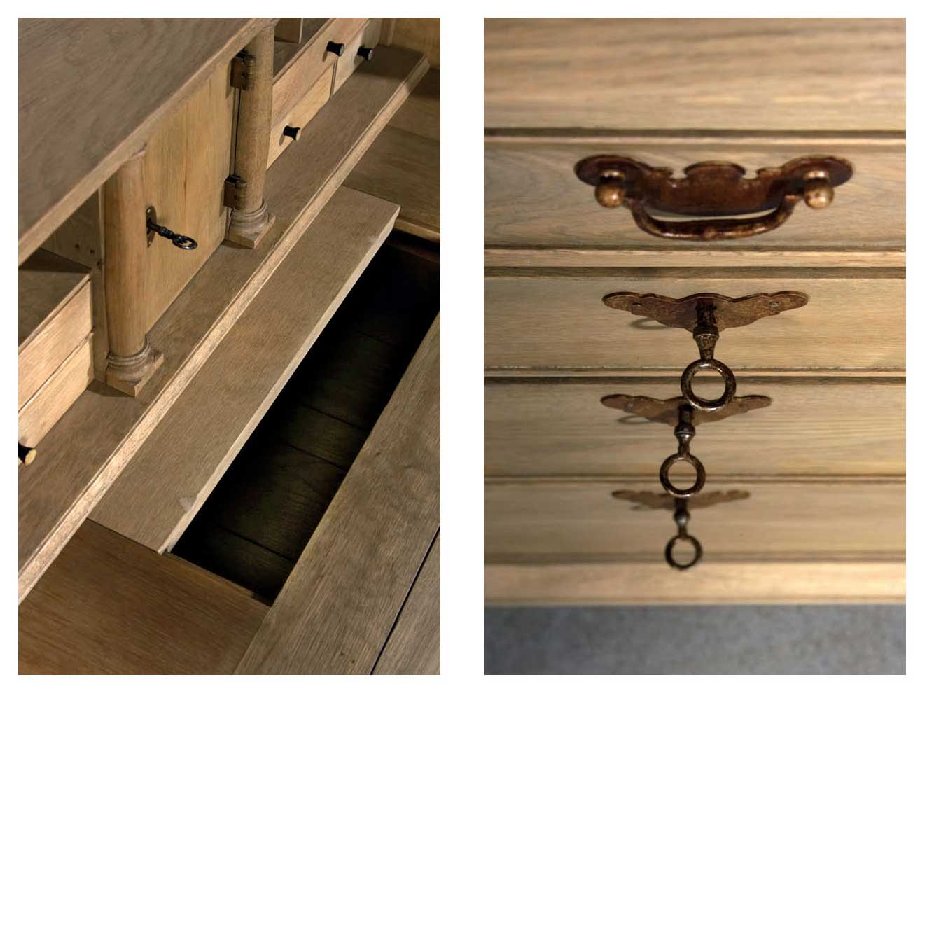 Wunderbarer Eichenschreibtisch mit ausklappbarer Schreibtischplatte, vielen Schubfächern und kleinen Fächern.