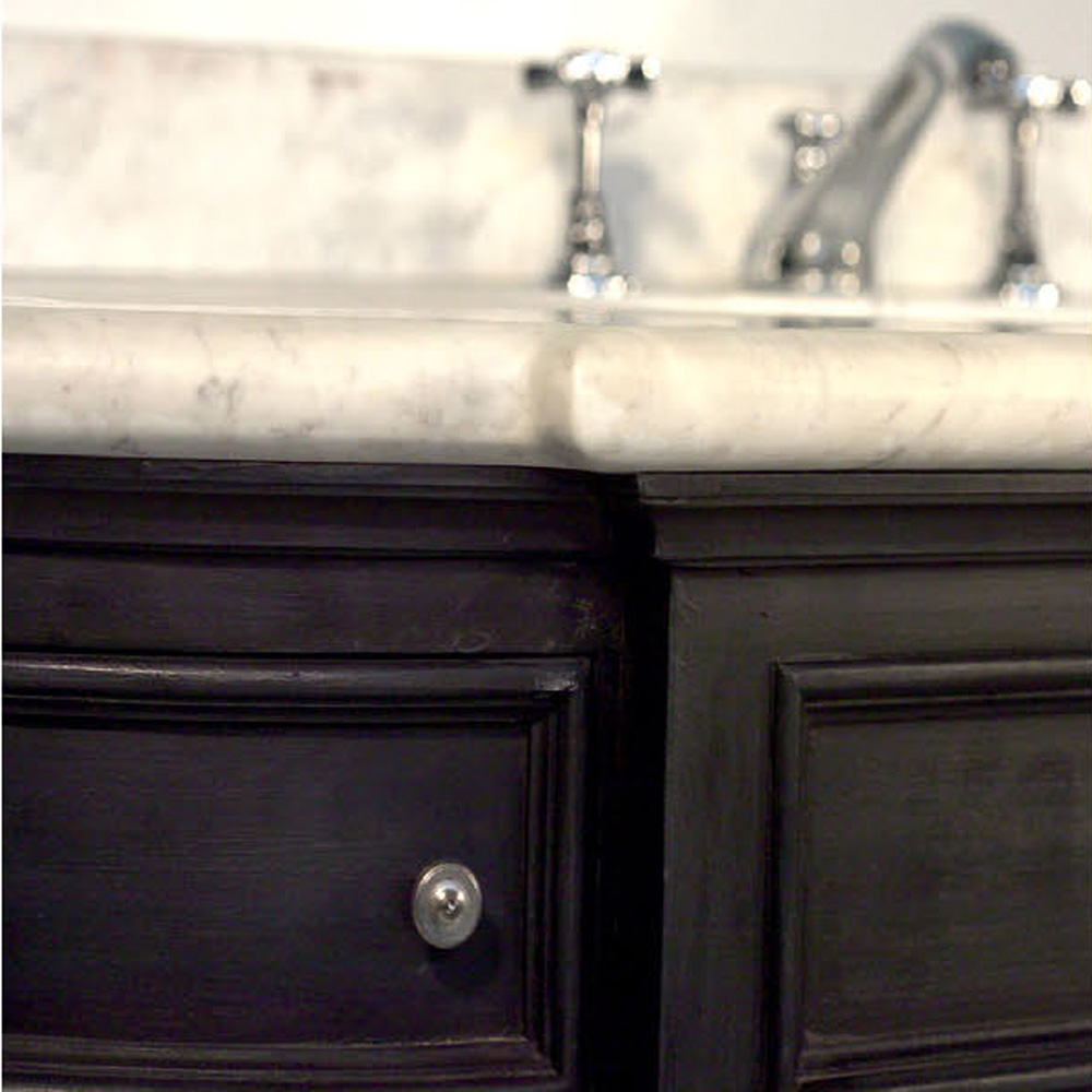 Wahlweise kann der Waschtisch auch mit einer Blausteinplatte gefertigt werden. Maßanfertigungen sind ebenfalls möglich.