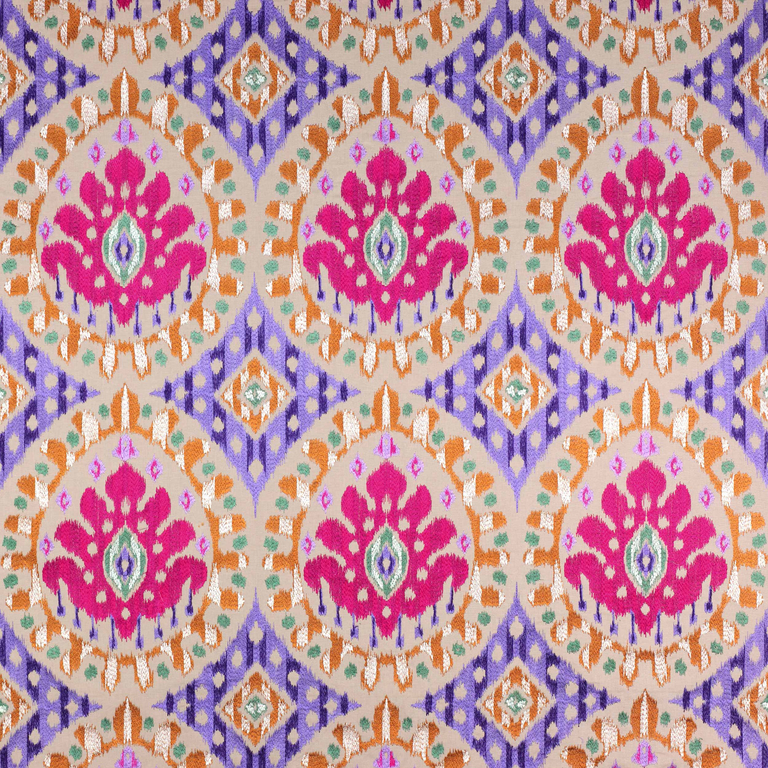 Diese bestickte Baumwolle ist der besondere Hingucker und schon ein kleines Kissen mit dieser Meterware kann Ihr ganzes Zimmer verzaubern.