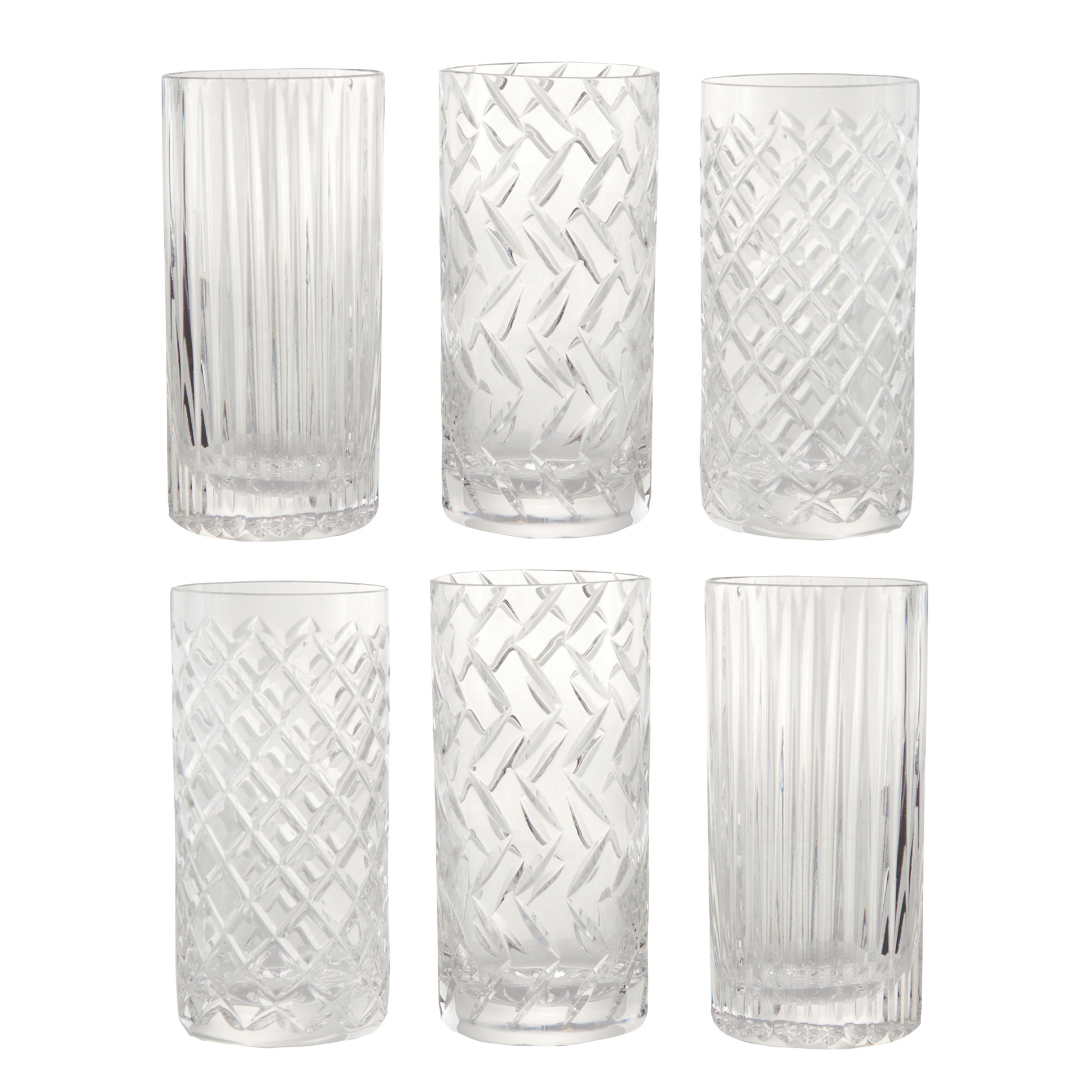 Handgearbeitete Longdrinkgläser mit 6 unterschiedlichen Mustern.