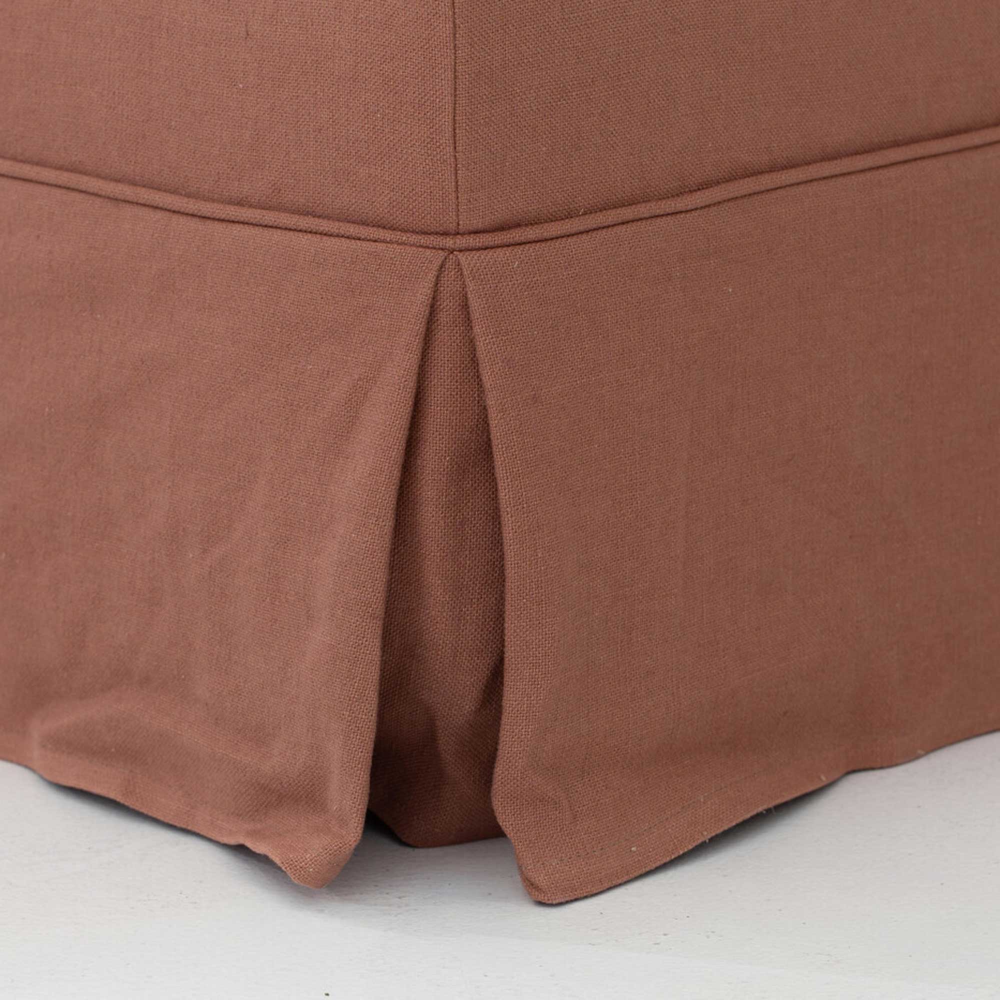 Wie die größere Variante passt auch diese Bank perfekt zu allen unseren Sofamodellen und ist ein besonders schöner Begleiter zum Sofa Roxanna, da Proportionen und textile Verarbeitung aufeinander abgestimmt sind. Die weiche Polsterung sorgt für angenehmen Komfort, während die reduzierte Form eine ruhige, elegante Ausstrahlung bewahrt.