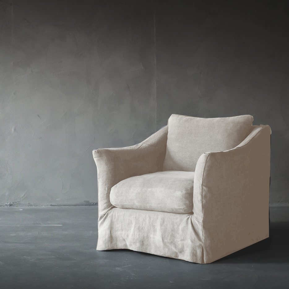 Sessel mit Husse aus italienischem Leinen. Wird von Hand in belgischer Manufaktur gefertigt.