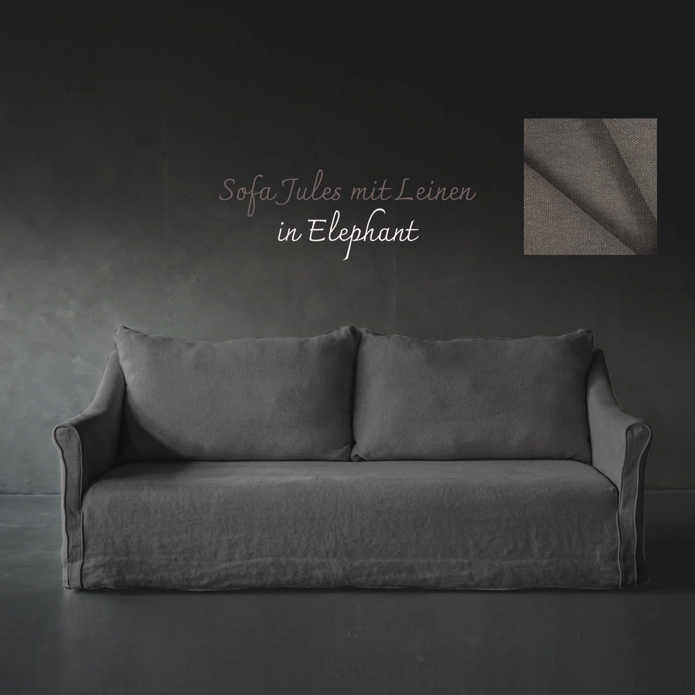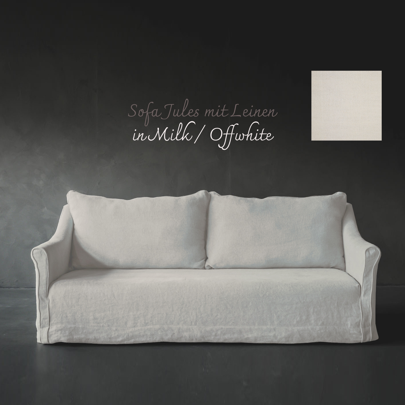 Sofa mit Husse aus belgischem Leinen. Wird von Hand in unserer Manufaktur gefertigt