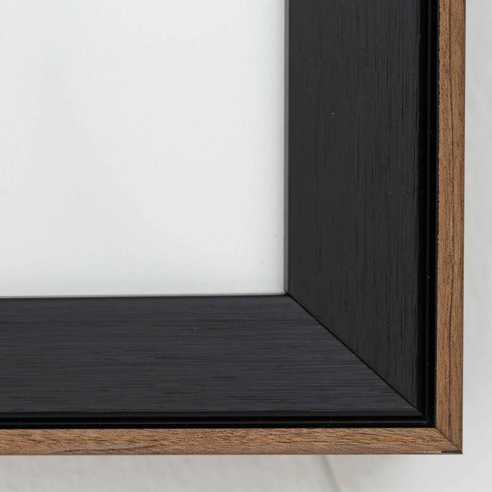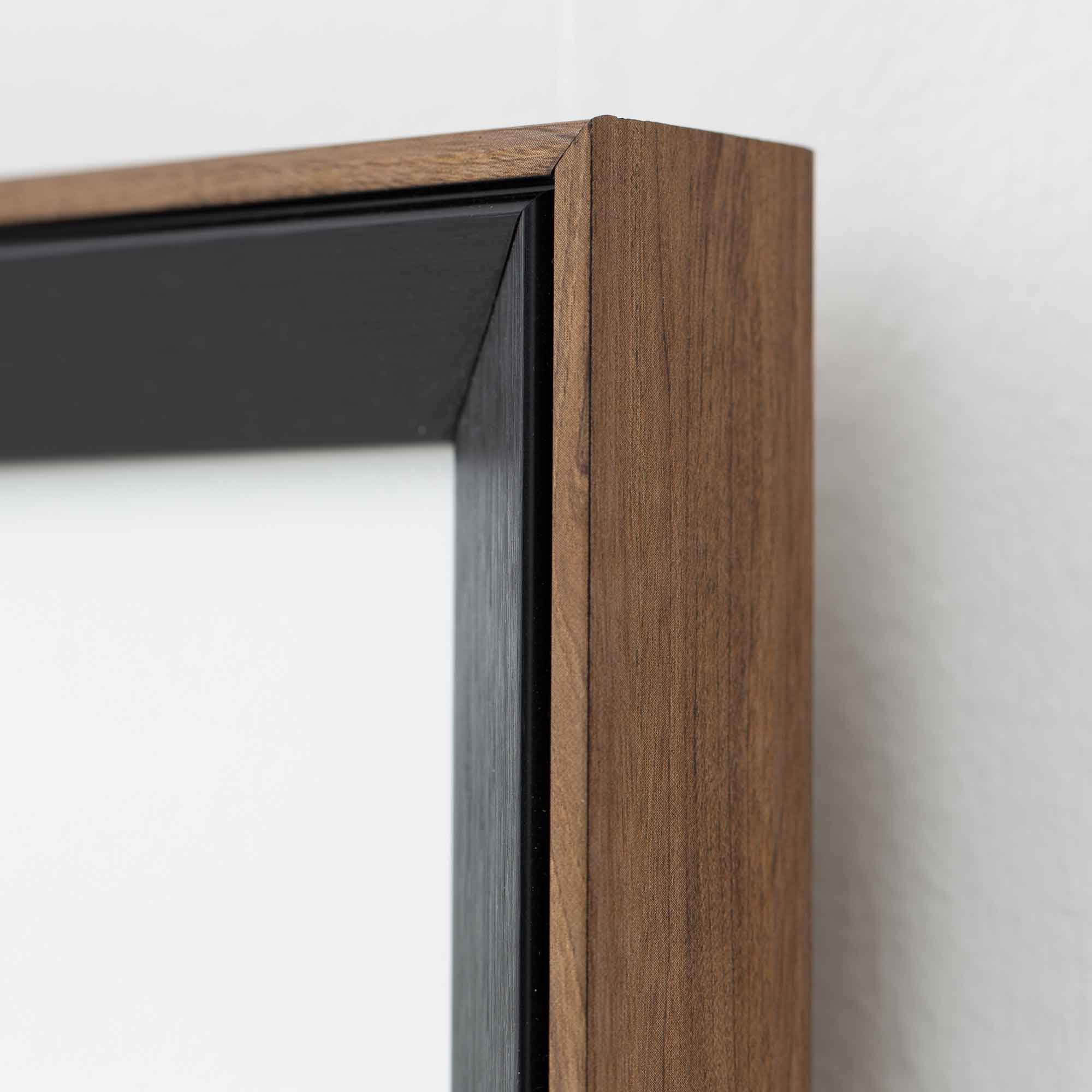 Der hochwertige Kunstdruck wird von einem edlen, doppelt eingefassten Rahmen umgeben. Die Kombination aus dunklem Innenrahmen und warmer Holzfassung schafft eine elegante Tiefenwirkung und verleiht dem Bild einen hochwertigen Galerie-Charakter. Das klare Glas unterstreicht die feinen Kontraste der Fotografie und sorgt für eine ruhige, stilvolle Präsentation.