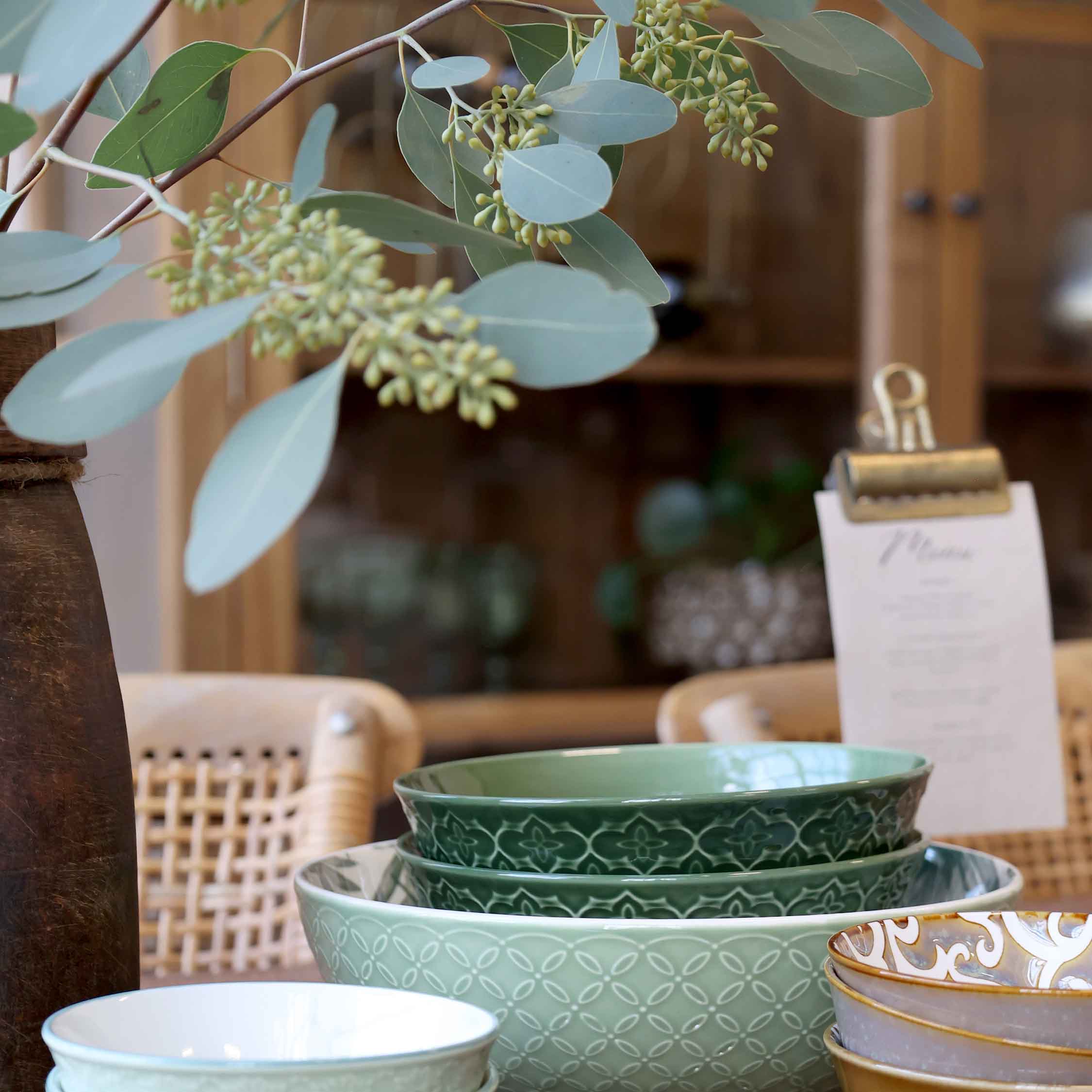 Die Porzellanschale Aprés Mossgreen ist die großzügigste der Aprés-Familie — mit 950 ml Fassungsvermögen für Müsli, Salate, Suppe oder das Dessert in großer Runde. Das feine Blütenmuster rundum in tiefem Moosgrün verleiht ihr Charakter und Tiefe. Innen glänzend einfarbig — schlicht und schön. Wer die ganze Serie sammelt: die Mossgreen macht auch im Stapel eine gute Figur.