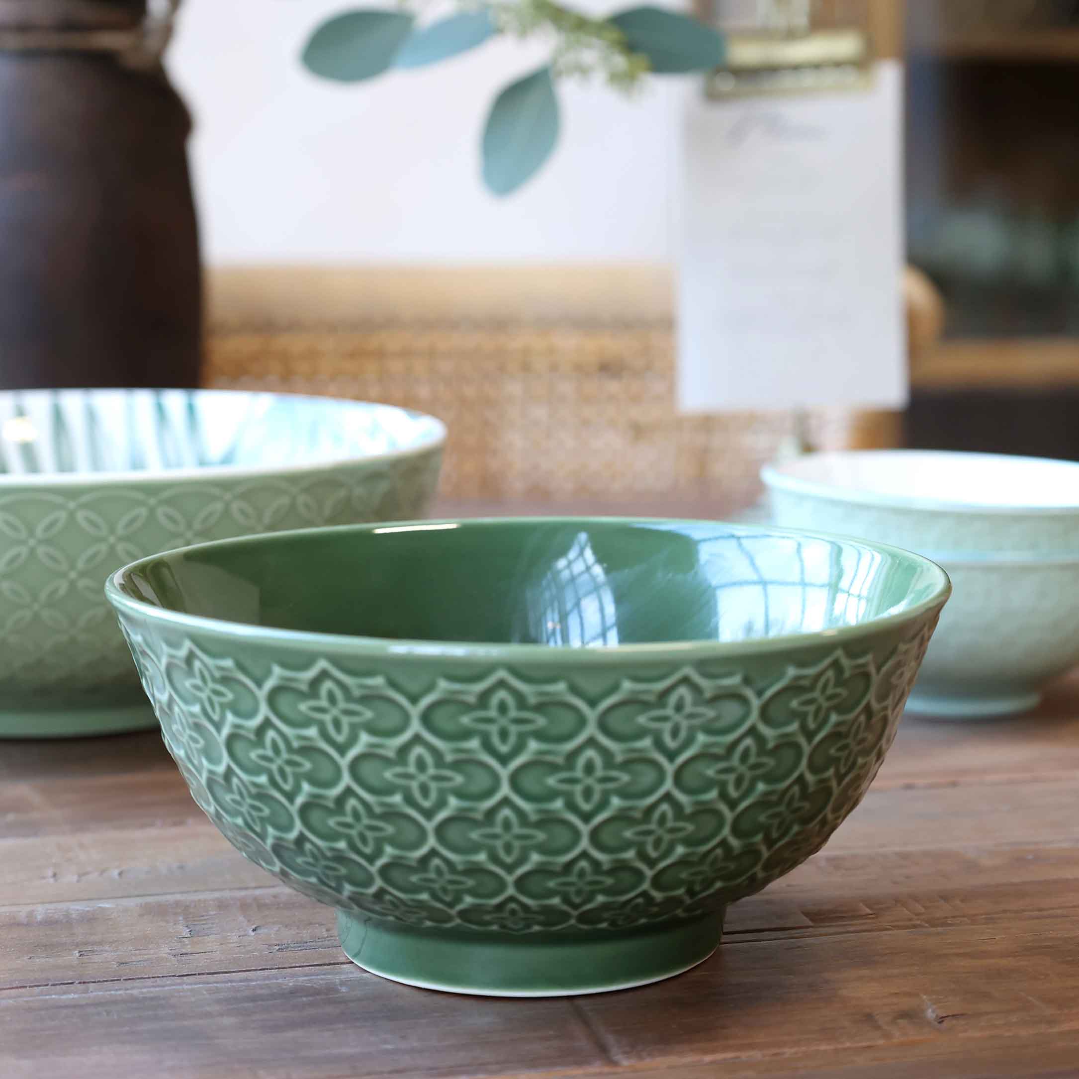 Porzellanschale Aprés Mossgreen — tiefes Moosgrün mit Blütenmuster, 950 ml