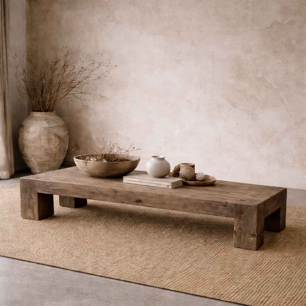 Der Wabi-Sabi Couchtisch Flynn von Flamant ist ein ausdrucksstarkes Statement-Piece für puristische, authentische Interieurs.