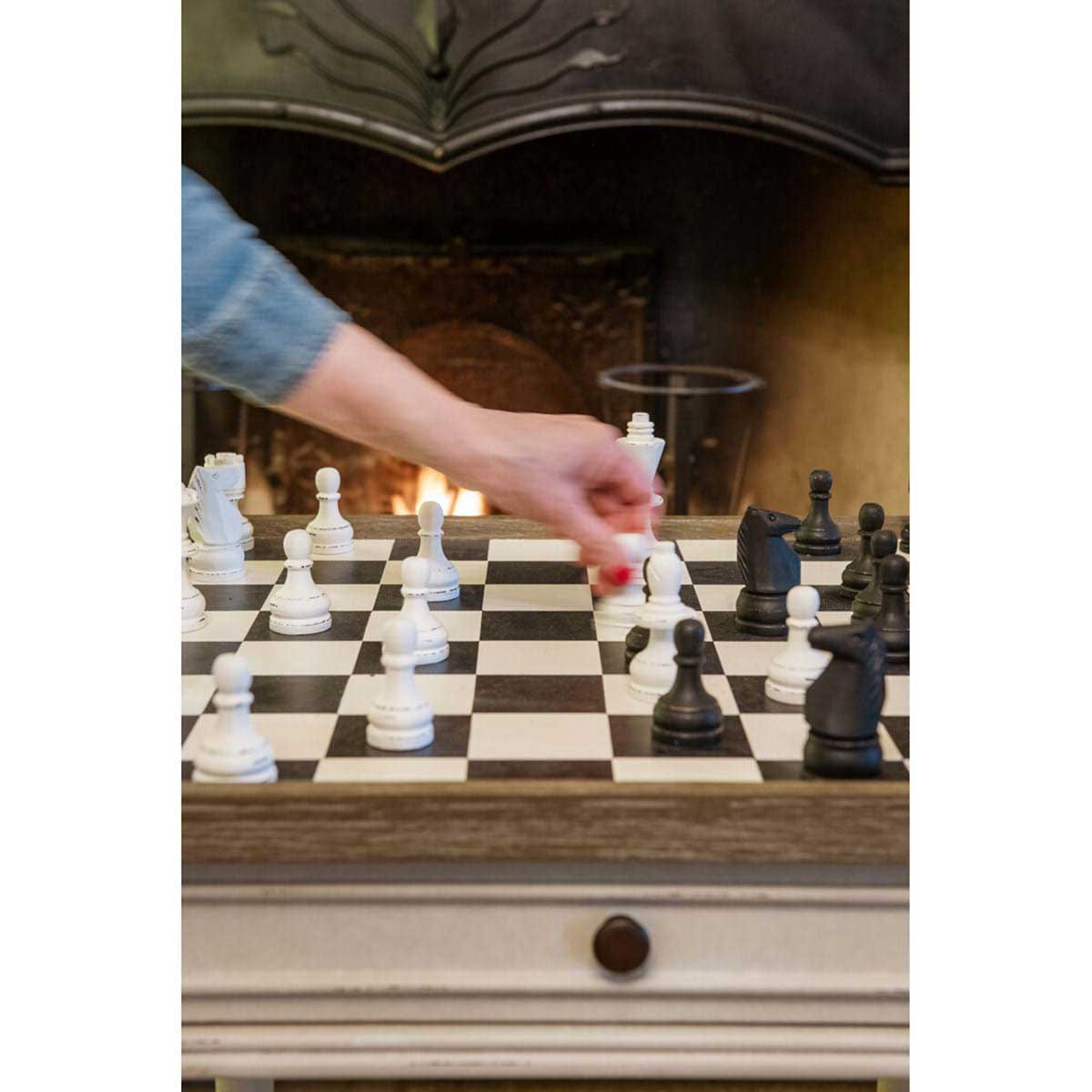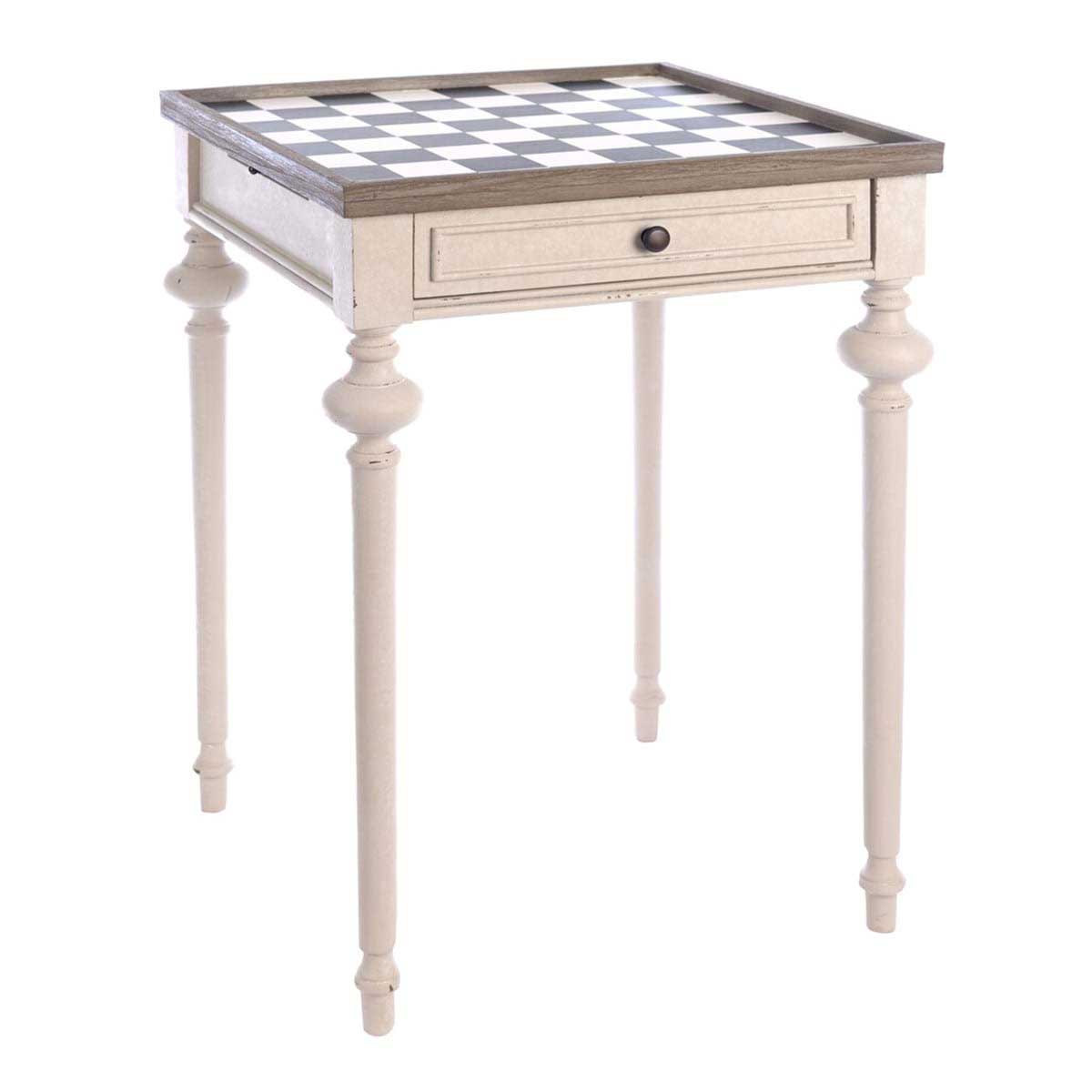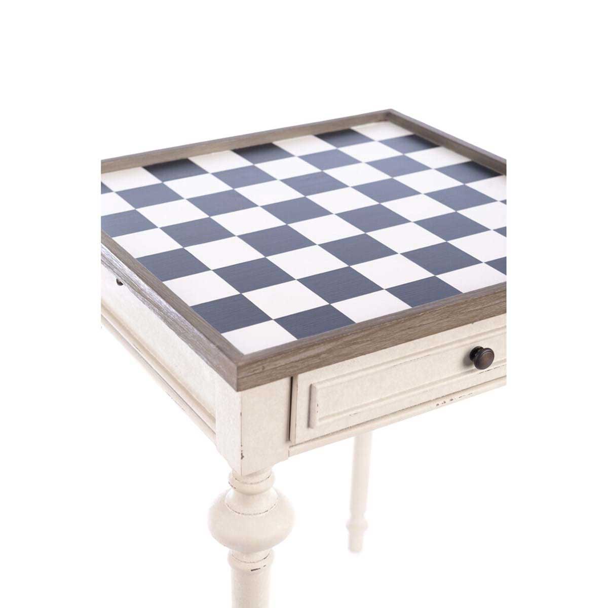 Süßer Esstisch mit Schachbrett aus Holz mit schönem antiksiertem Finish.
