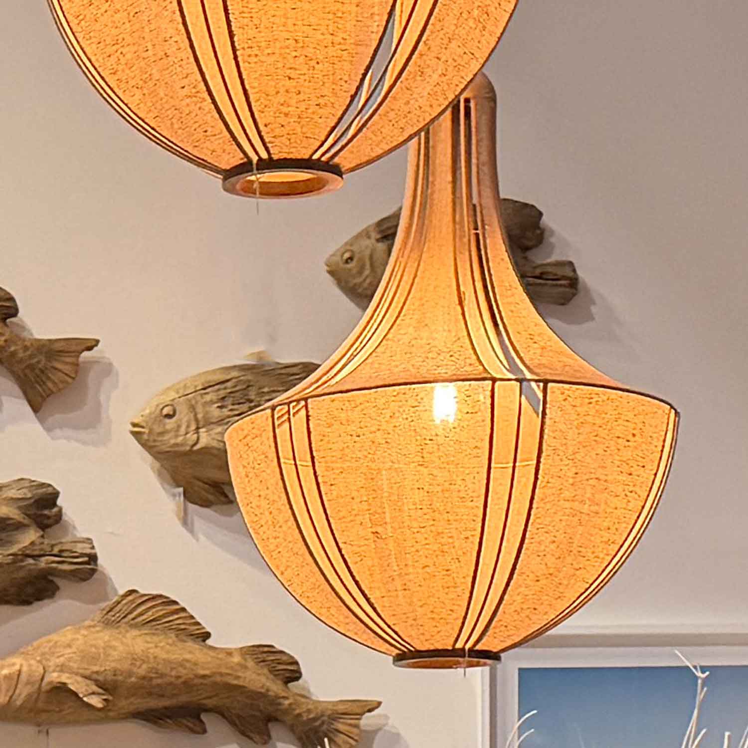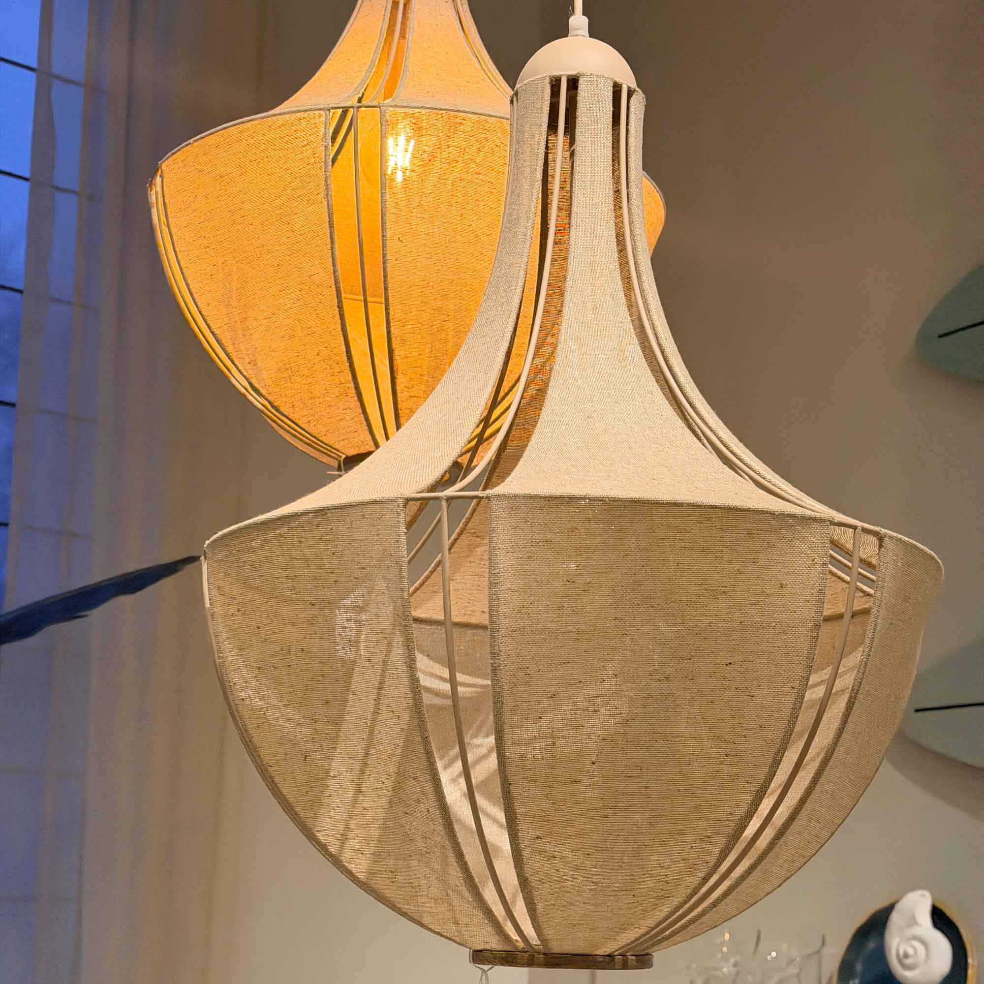 - Textile Deckenleuchte aus Leinen für weiches, warmes Licht