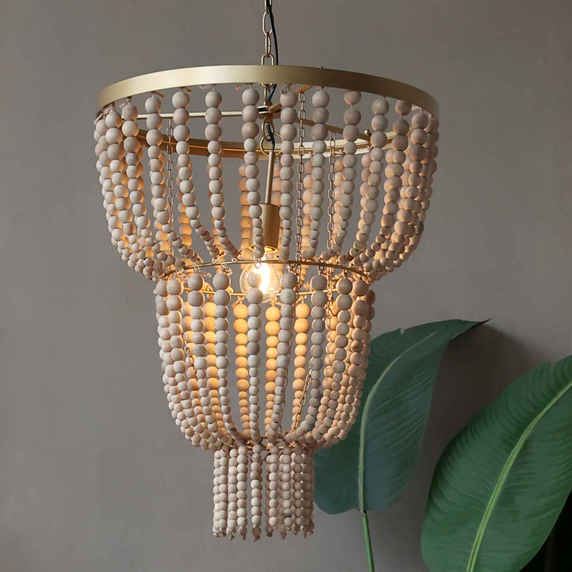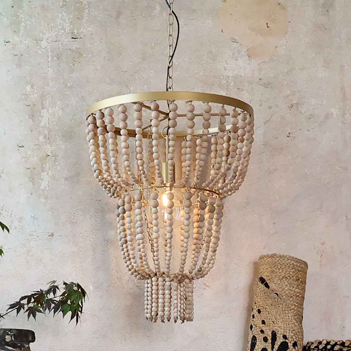 Leichter Leuchter aus Eichenholz mit einem hübschen Messingrahmen. Kabel- und Kettenlänge variiert werden je nach Höhe Ihrer Decke.
