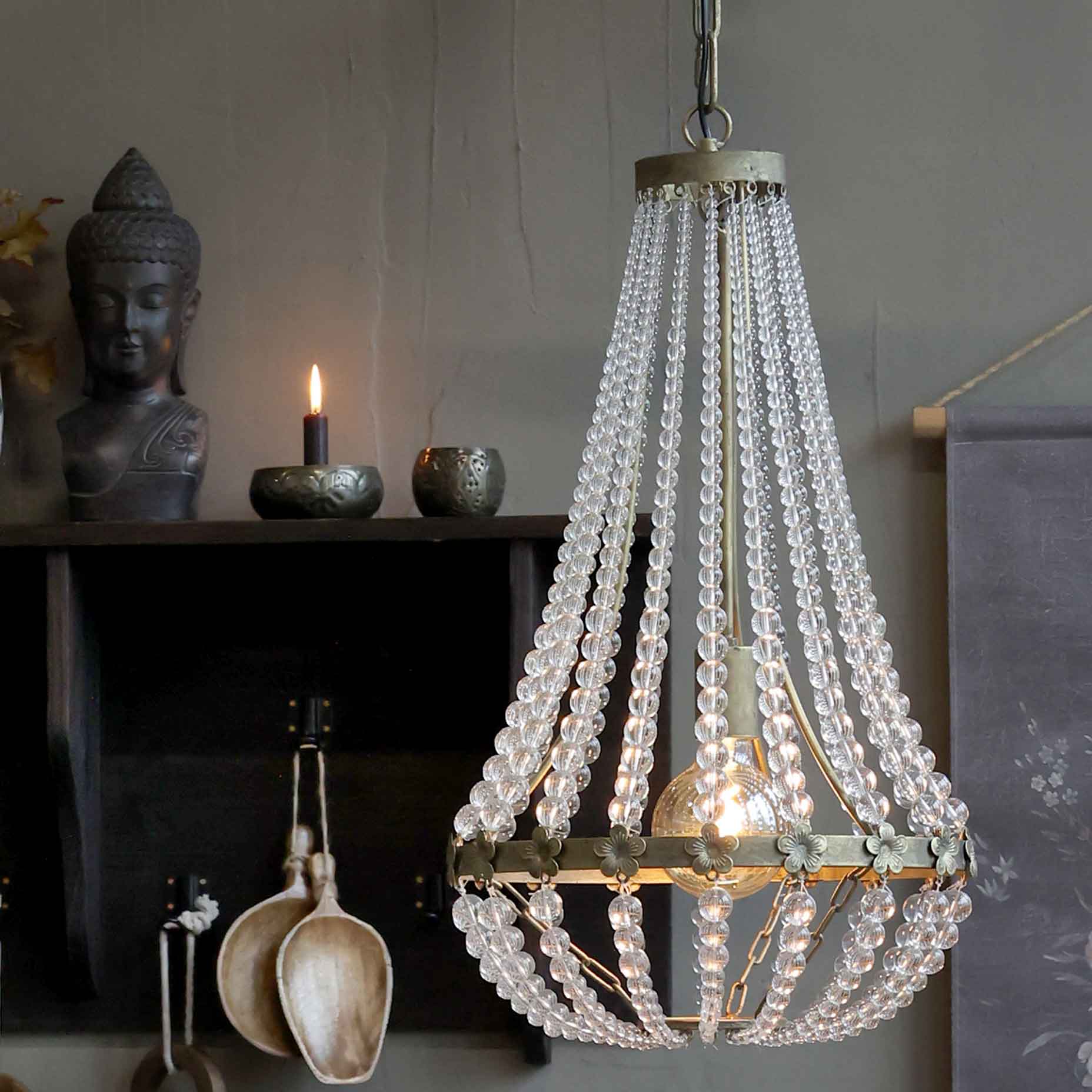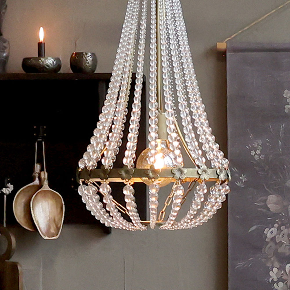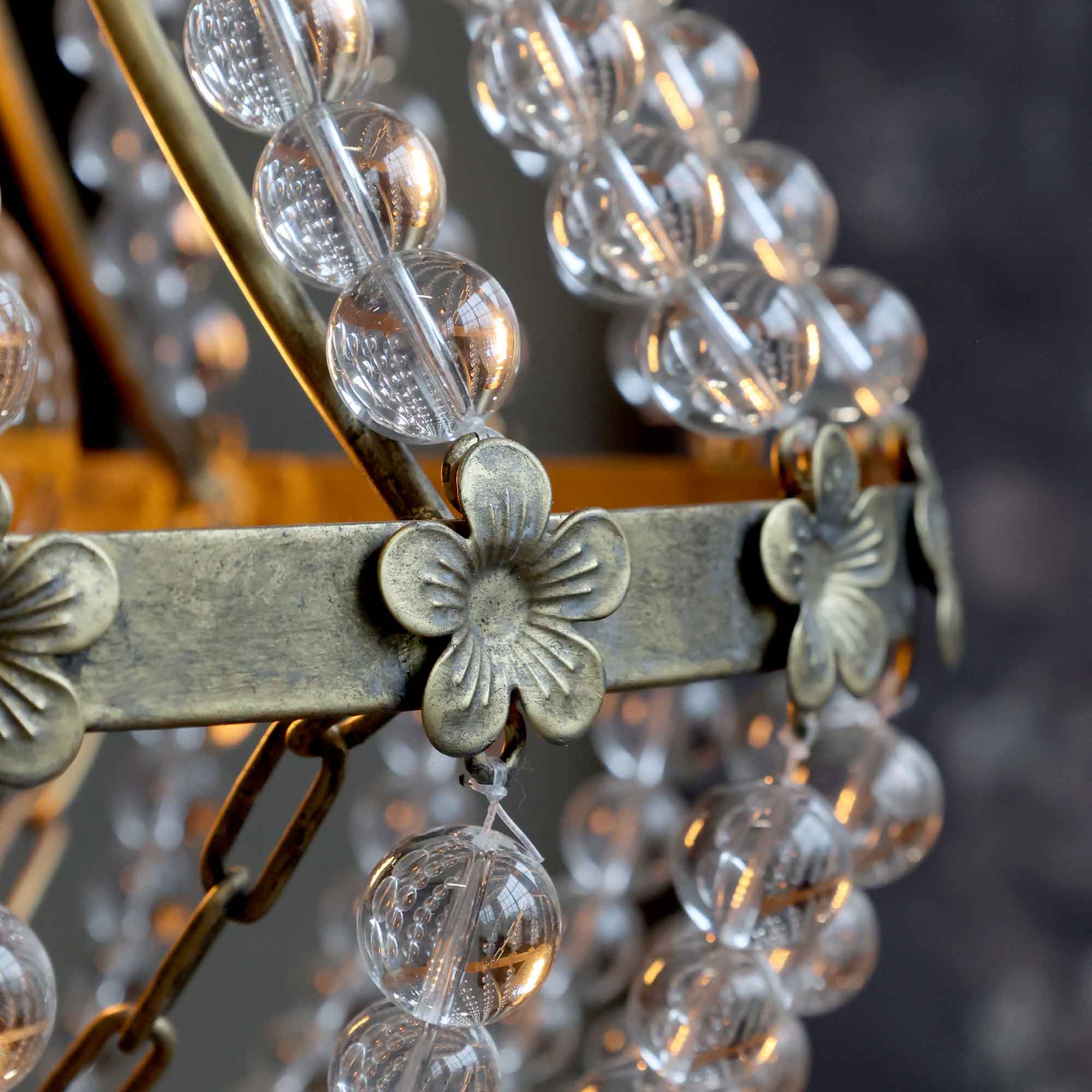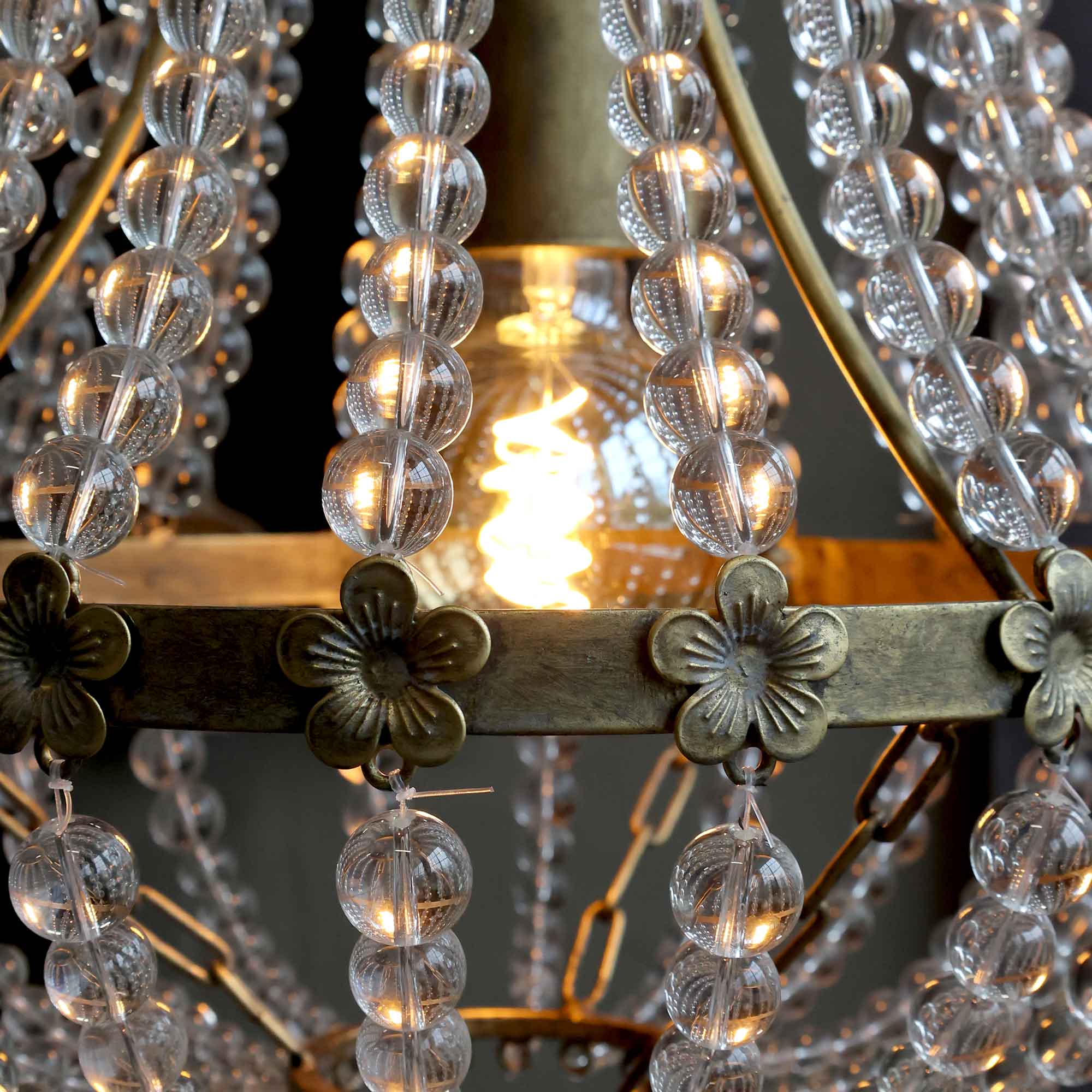 Eleganter Kronleuchter mit hübschen Glaskugeln und einem Messingrahmen.
