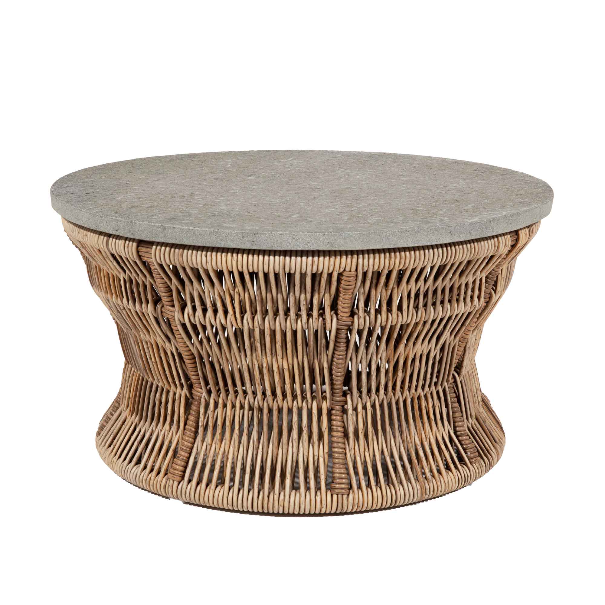 Der Couchtisch verbindet die warme, natürliche Flechtoptik mit der edlen Ruhe einer Steinplatte. So entsteht ein stilvoller Outdoor-Tisch, der Ihre Lounge harmonisch ergänzt – modern, zeitlos und hochwertig.