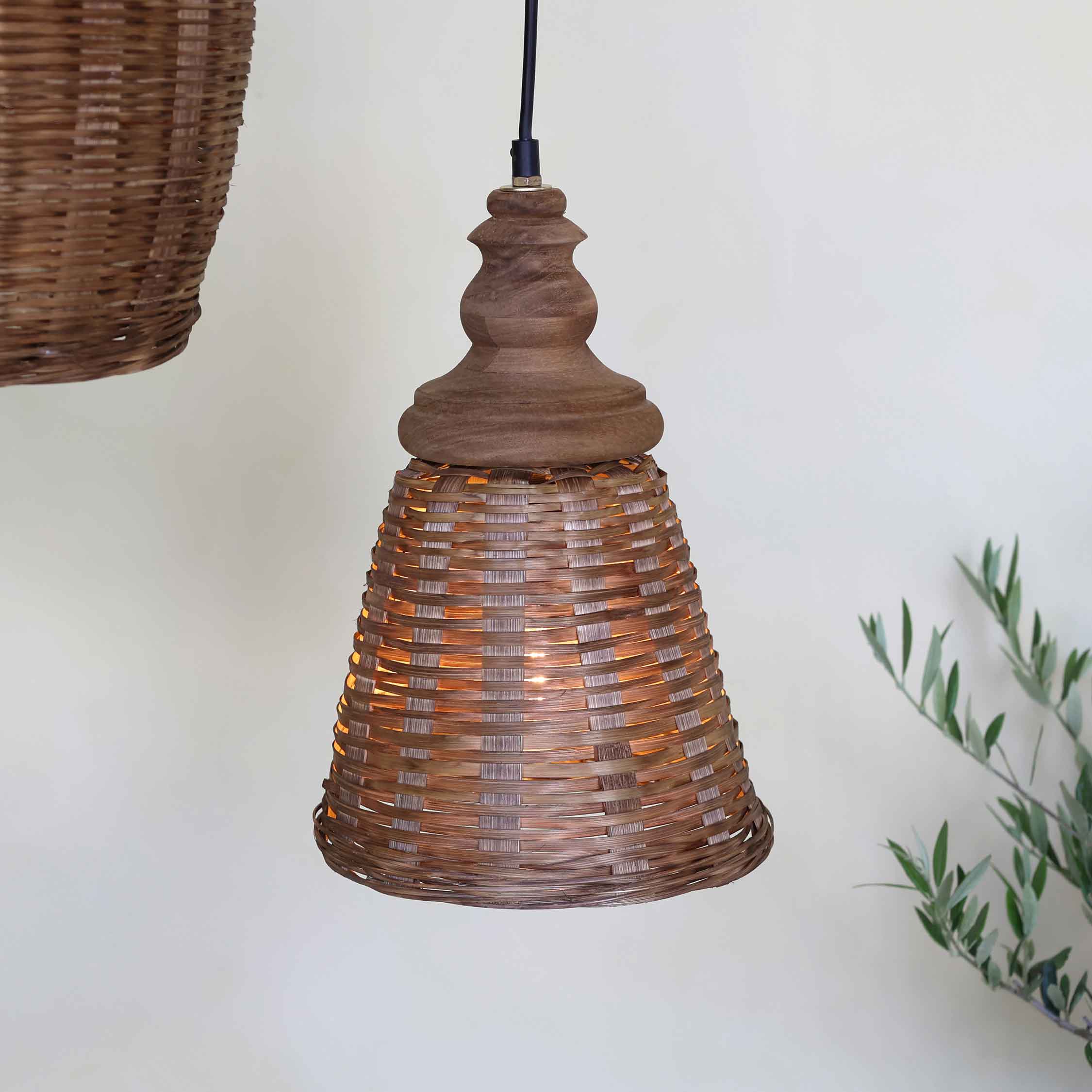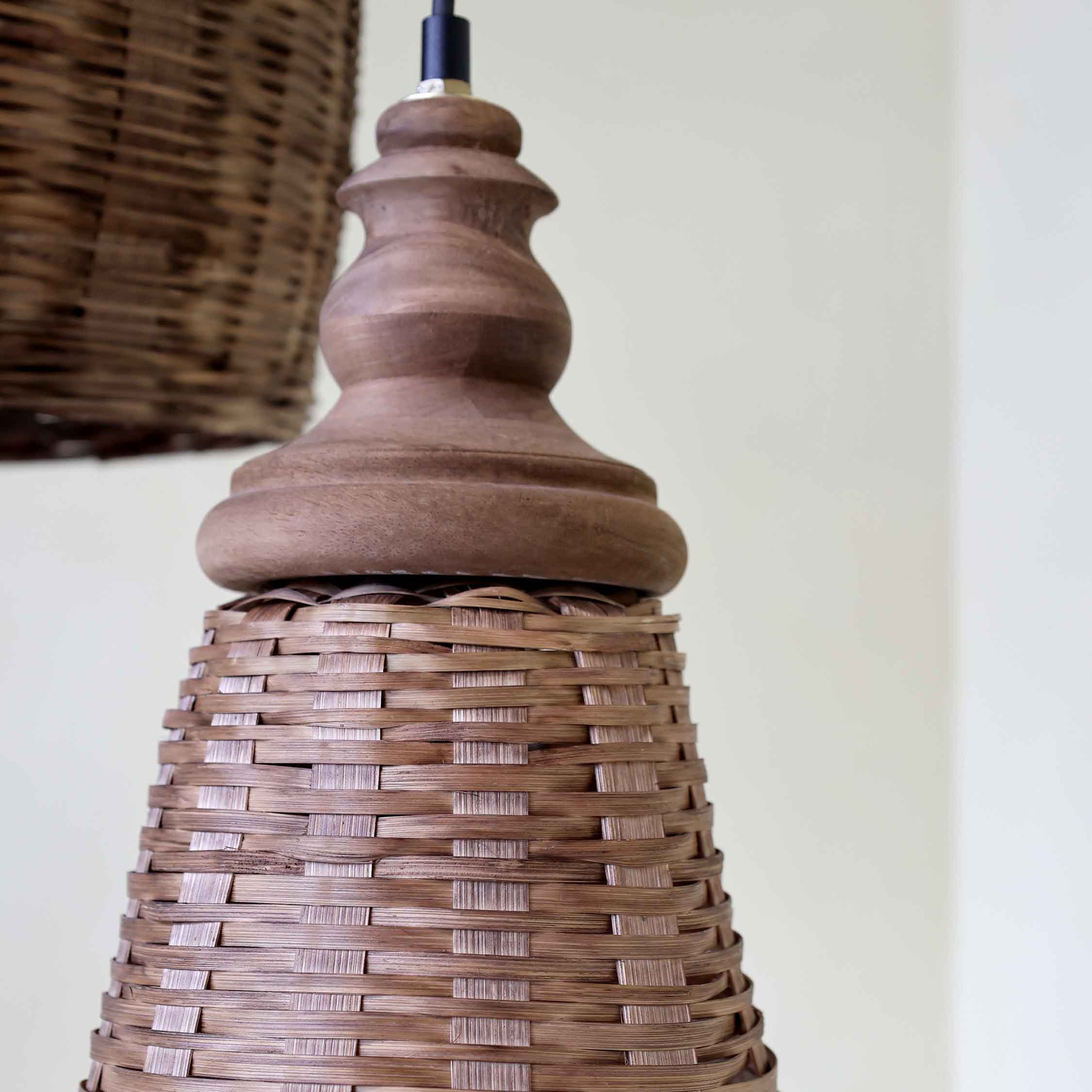 Die konische Form wirkt leicht und elegant. Das Rattan filtert das Licht weich und schafft ein angenehmes,