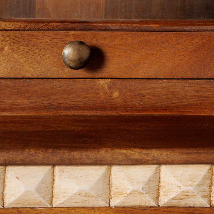 Mit seinen zwei Türen und der praktischen Klappe bietet „Andalus“ stilvollen Stauraum für Bücher, Sammlerstücke oder Accessoires – perfekt für Herrenzimmer, Ankleidezimmer oder als charaktervoller Zusteller im Büro.