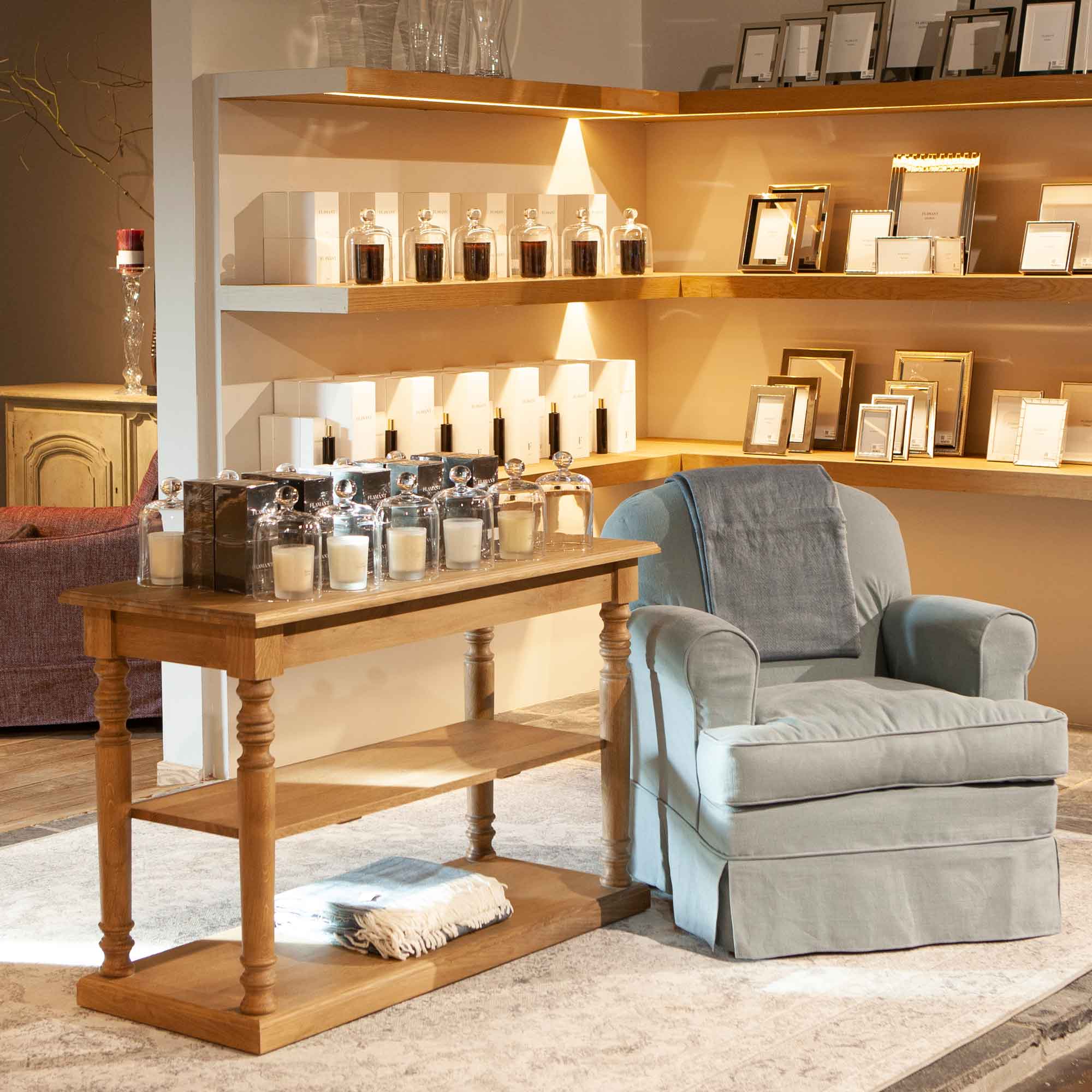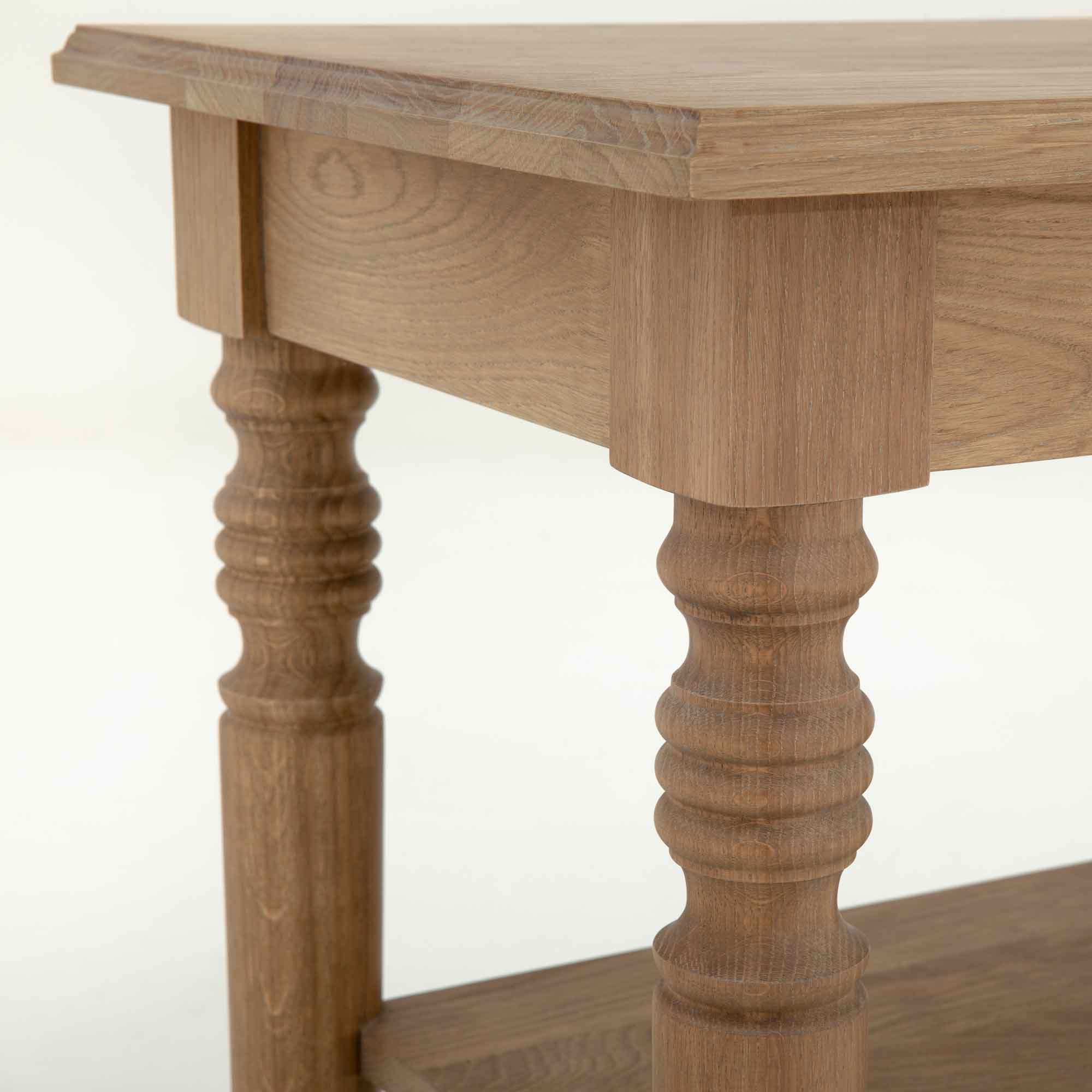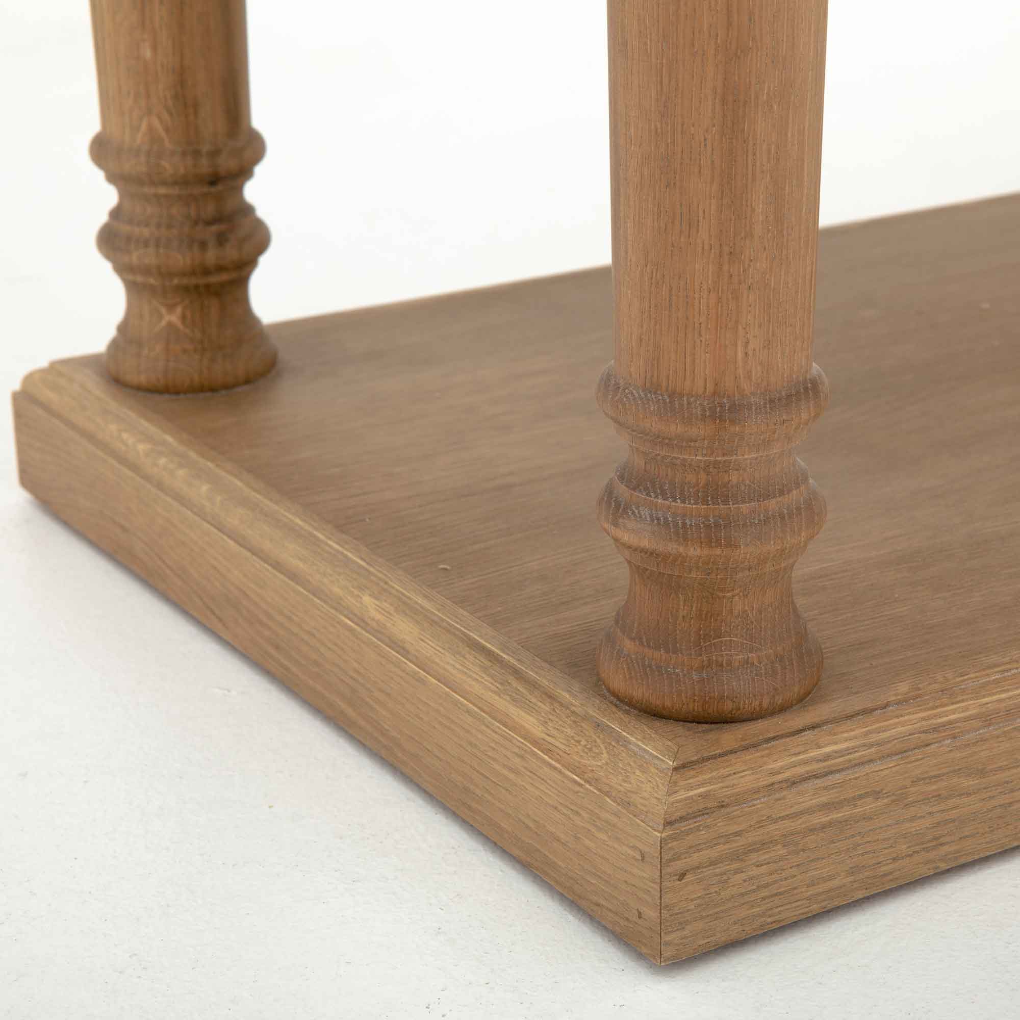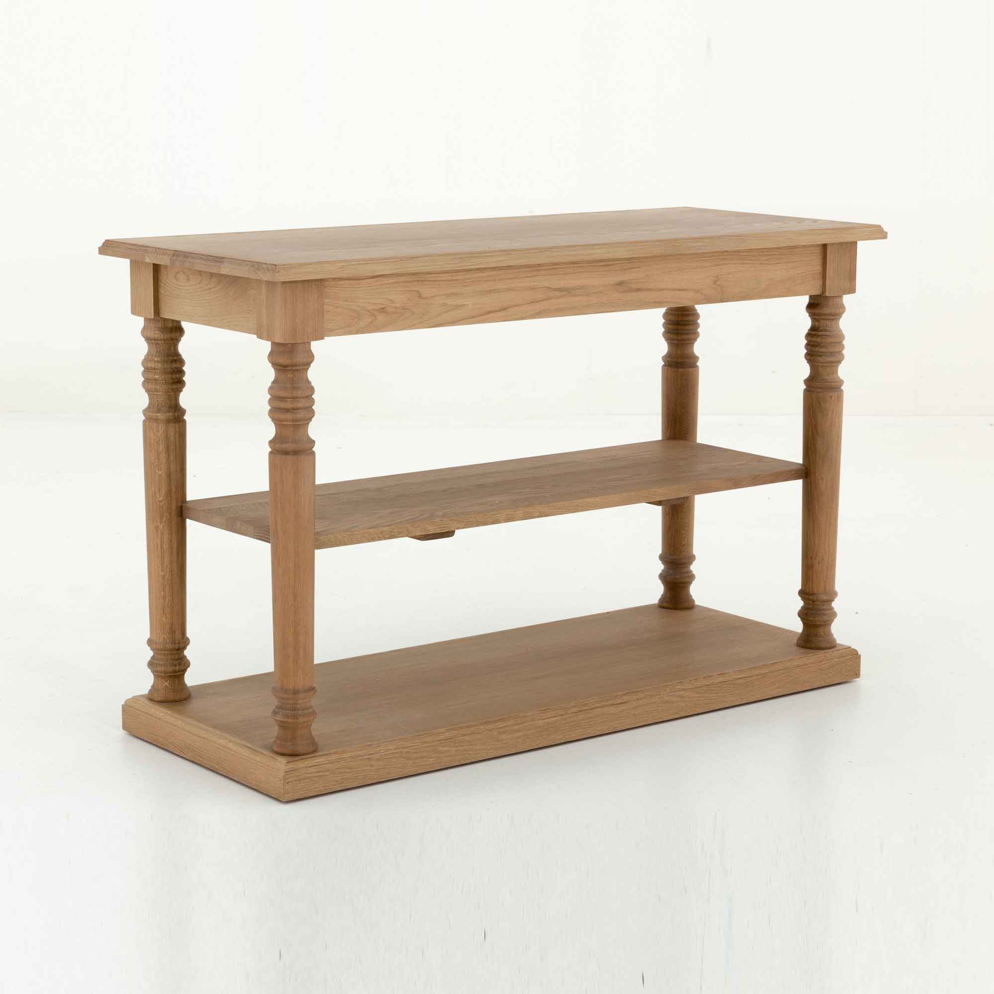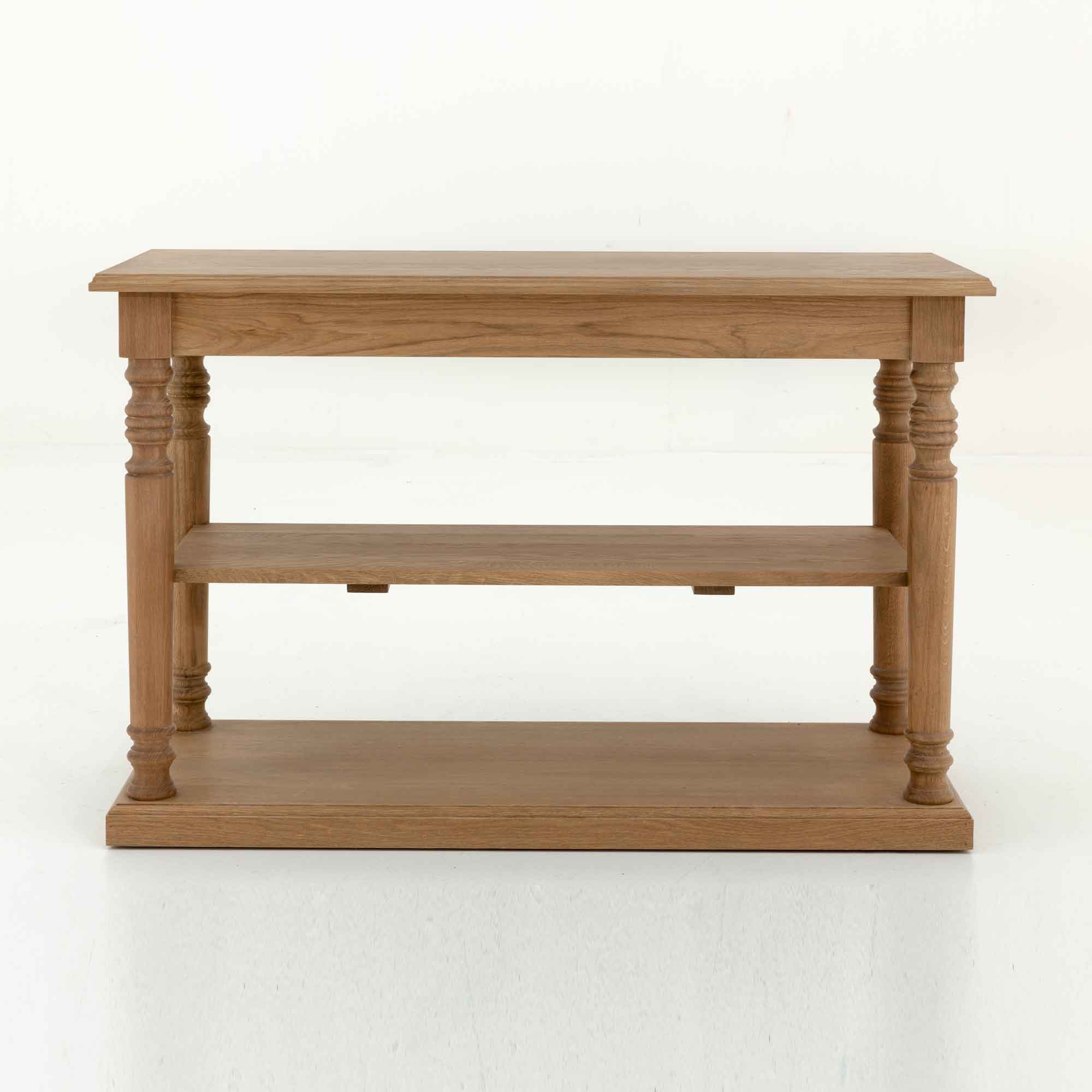 Konsole mit Ablagen aus Eichenholz in graugelaugten Look.