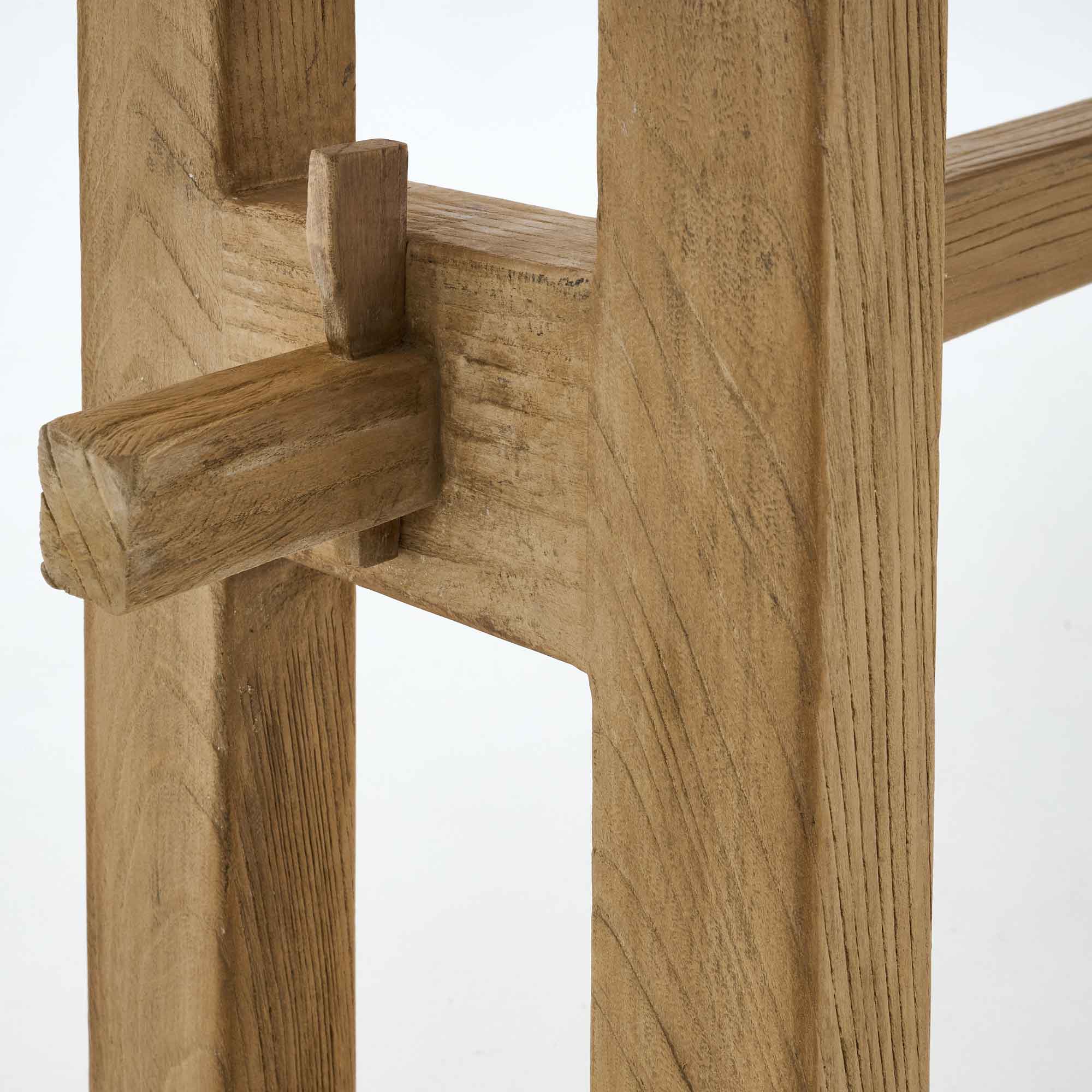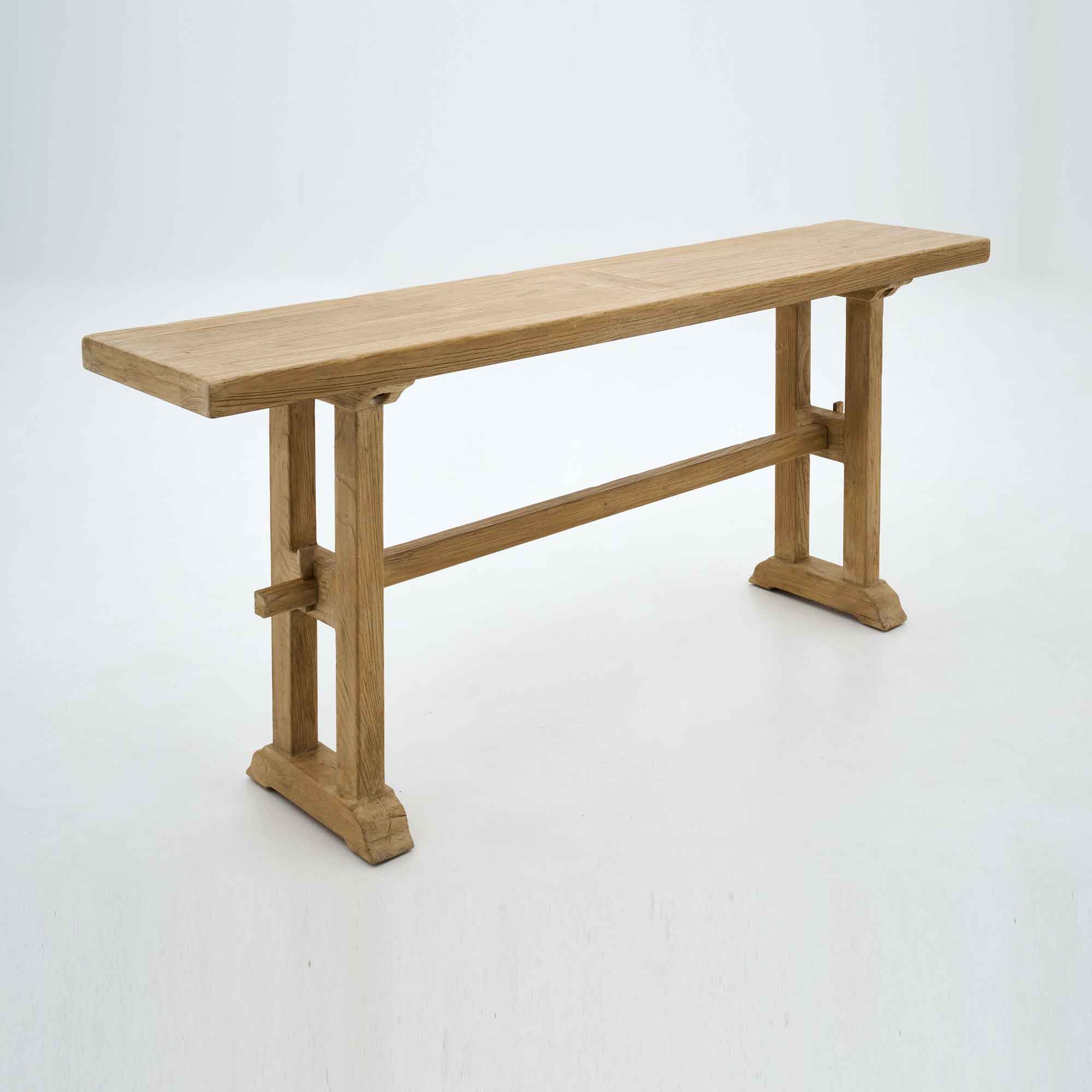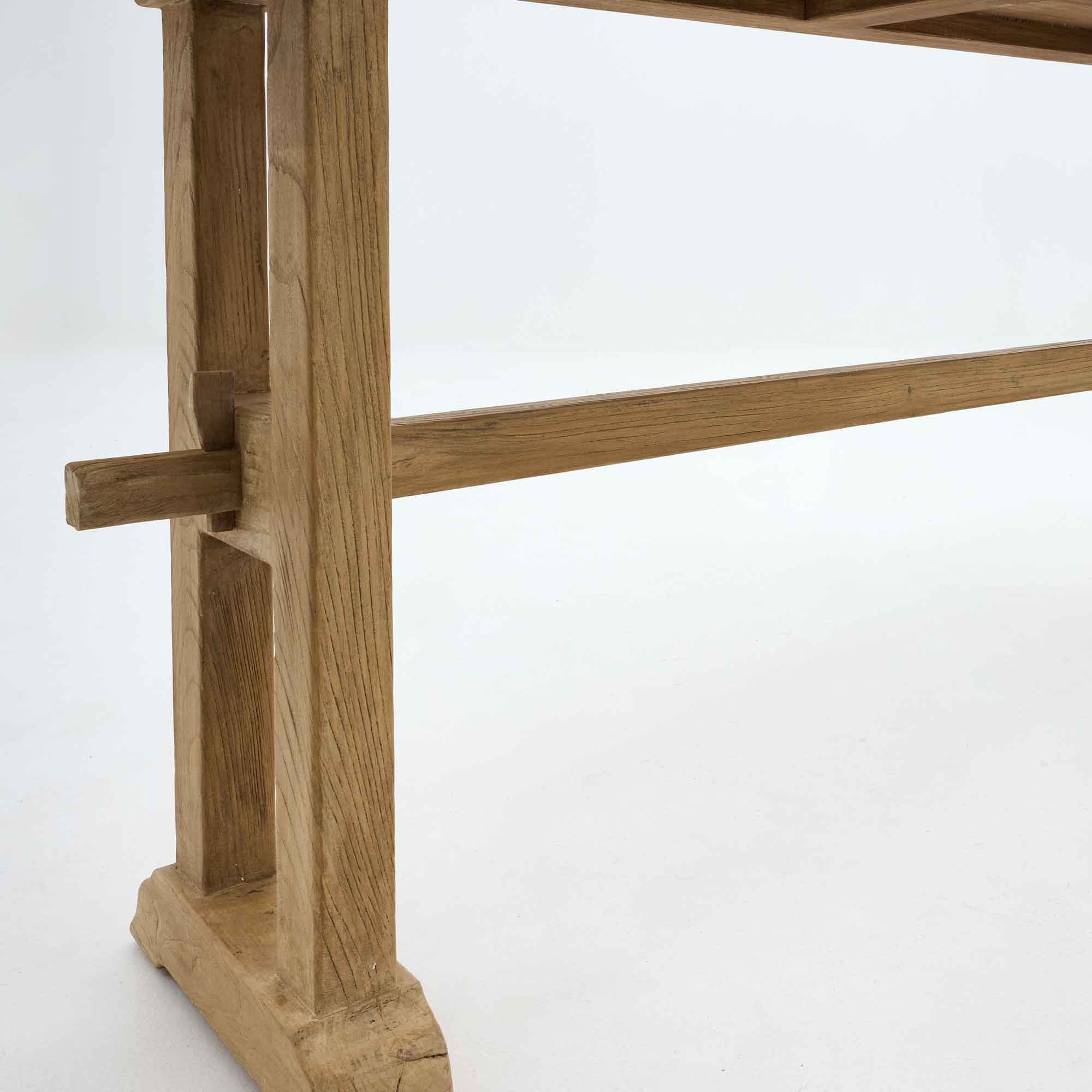 Schlanke lanke Konsole mit Werkbankcharakter. Das weiche Ulmenholz hat eine schöne Maserung und fühlt sich glatt an.