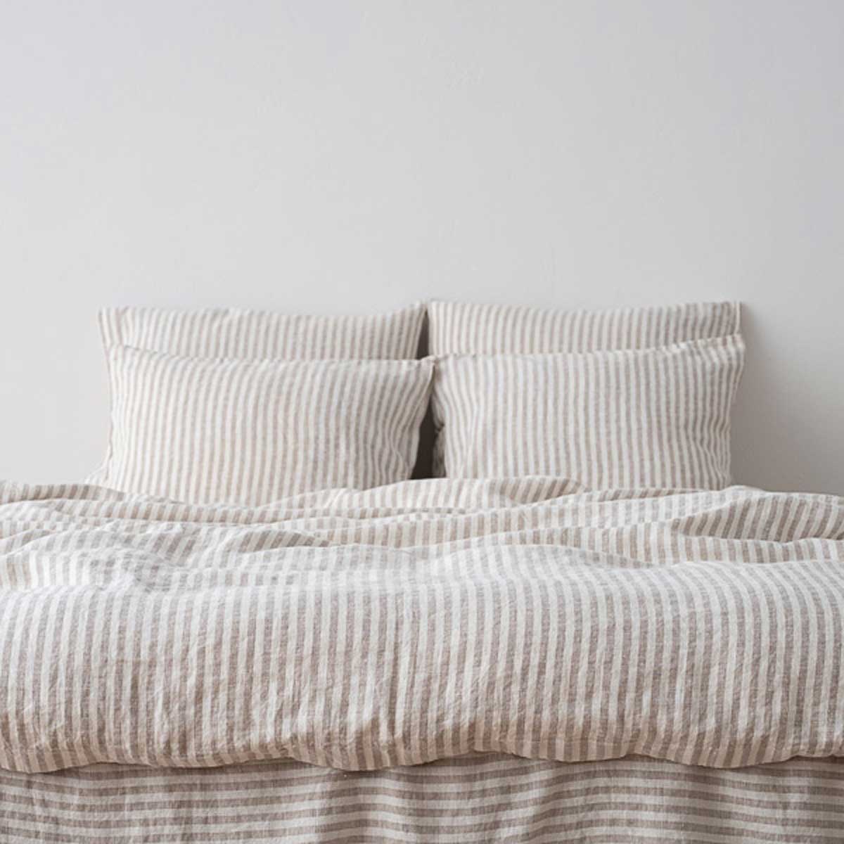 Unsere vorgewaschene Leinen-Bettwäsche verbindet auf perfekte Weise Vintage-Ästhetik mit zeitgemäßer Haptik. Sie besteht aus 100% Leinen und ist als Bettbezug mit verdecktem Knopfverschluss), Kissenbezug oder flachem Laken erhältlich. Vorgewaschen, um Schrumpfen zu vermeiden, und kann im Trockner getrocknet werden.