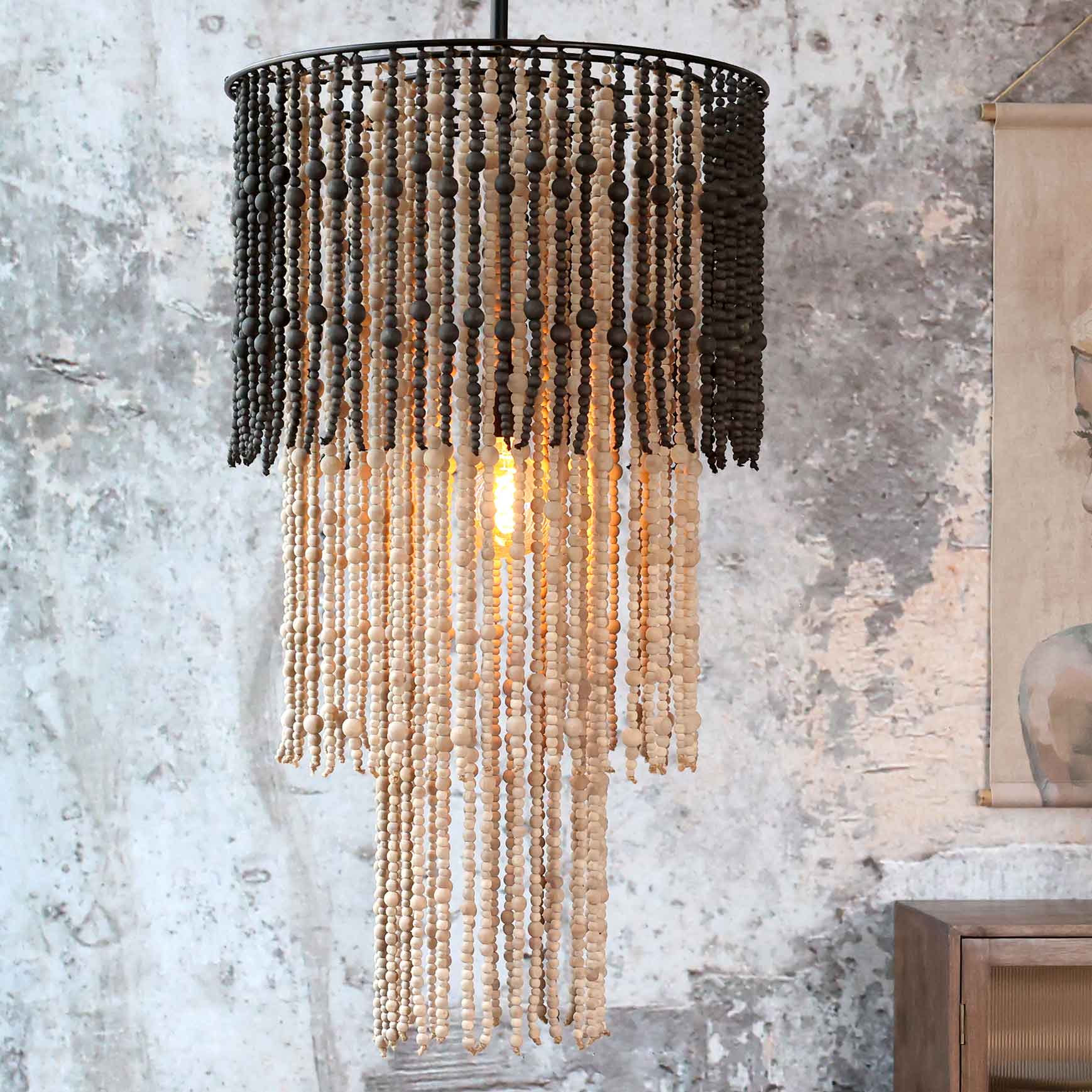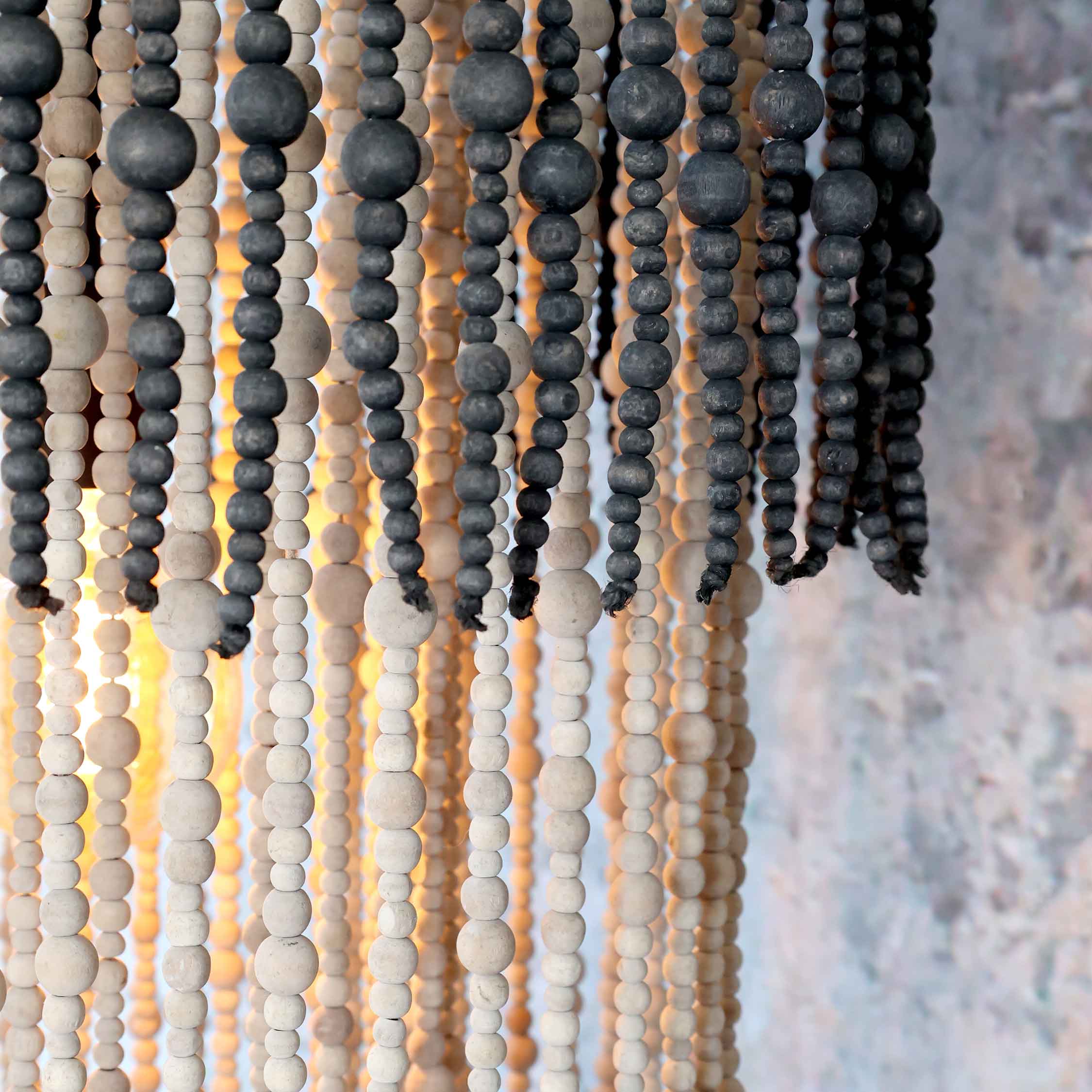 Edel, elegant und eintigartig: Kornleuchter Ada mit seinen zierlichen Holzperlen in natur und schwarz.