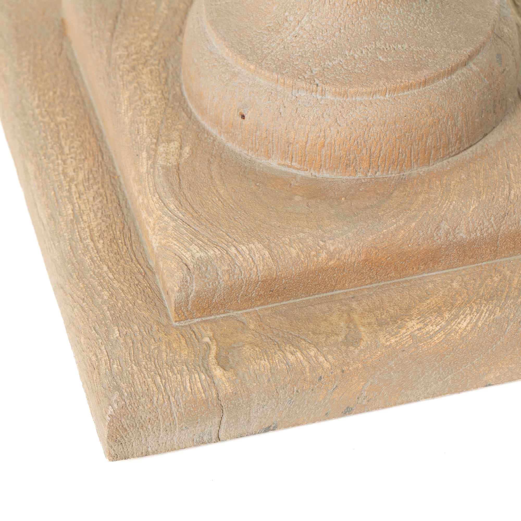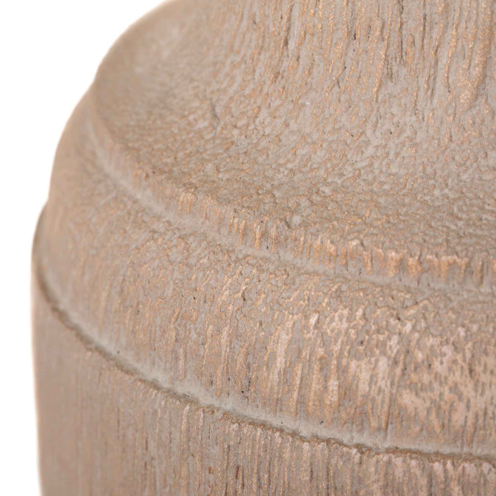 Die fein gebürstete Oberfläche unterstreicht die natürliche Maserung des Holzes und verleiht dem Lampenfuß eine spürbare Tiefe. Das dezente Grau wirkt modern und zurückhaltend zugleich, wodurch Gemino sowohl in klassische als auch in zeitgenössische Wohnkonzepte harmonisch integriert werden kann.