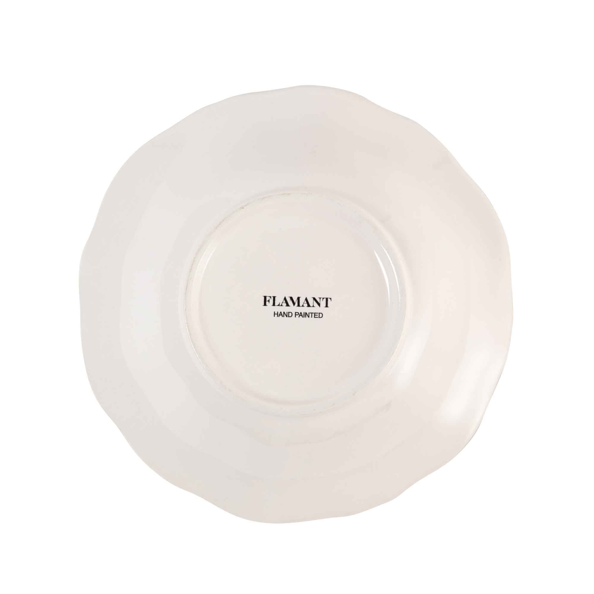 Die Olivio Dessertschale von Flamant bringt mediterrane Leichtigkeit und die charakteristische Handschrift der Botanical Edition auf Ihren gedeckten Tisch. Inspiriert von der beliebten Manosque-Geschirrserie verbindet dieses Modell klassische Fayencekeramik mit einem neu interpretierten Dekor aus zarten Olivenzweigen, das eine natürliche, ruhige Atmosphäre schafft.
