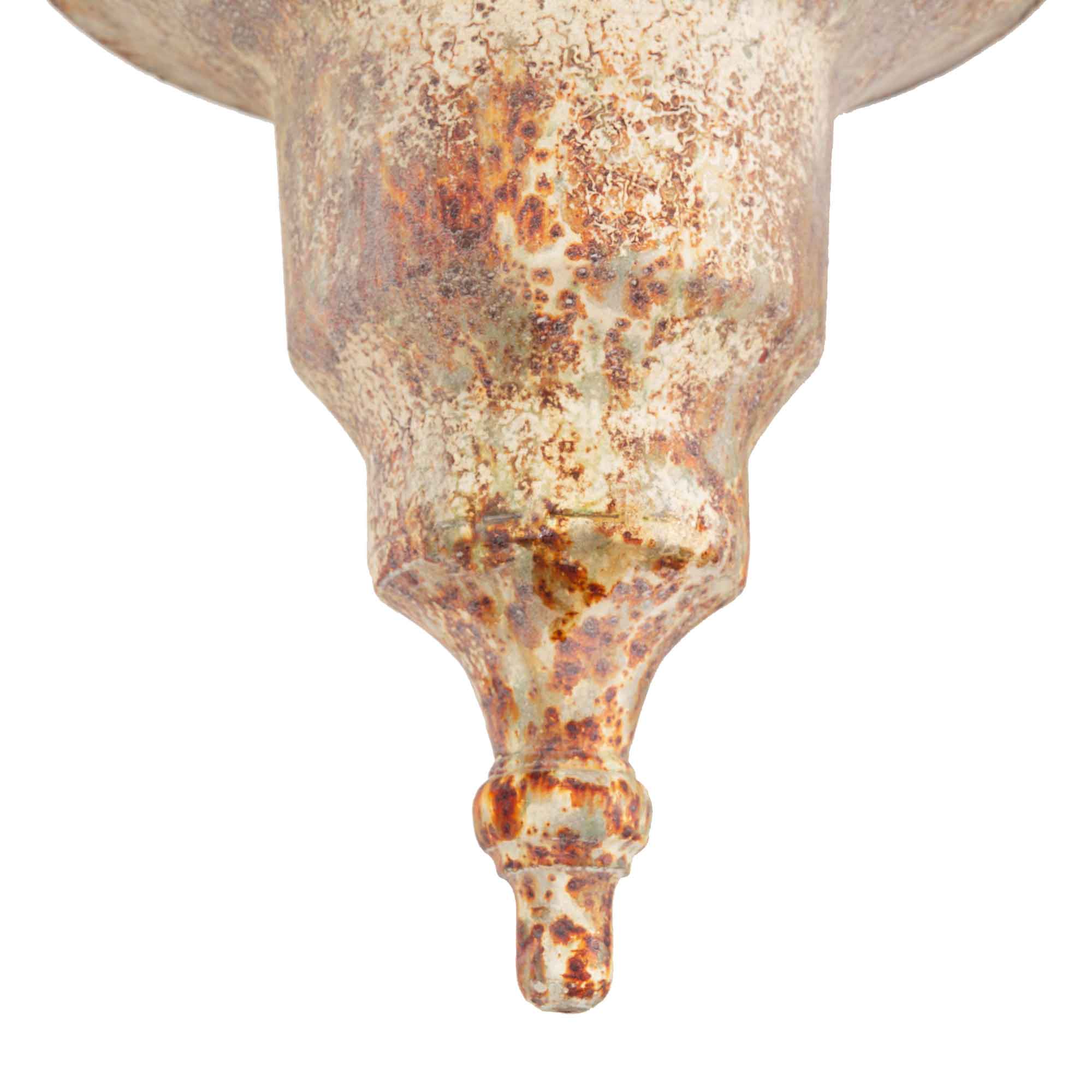 Gefertigt aus robustem Eisen mit antikem Finish, ist der Pflanztopf für den Außenbereich konzipiert. Die Oberfläche darf im Laufe der Zeit weiter Patina entwickeln – ein gewünschter Effekt, der den authentischen Charakter zusätzlich unterstreicht.