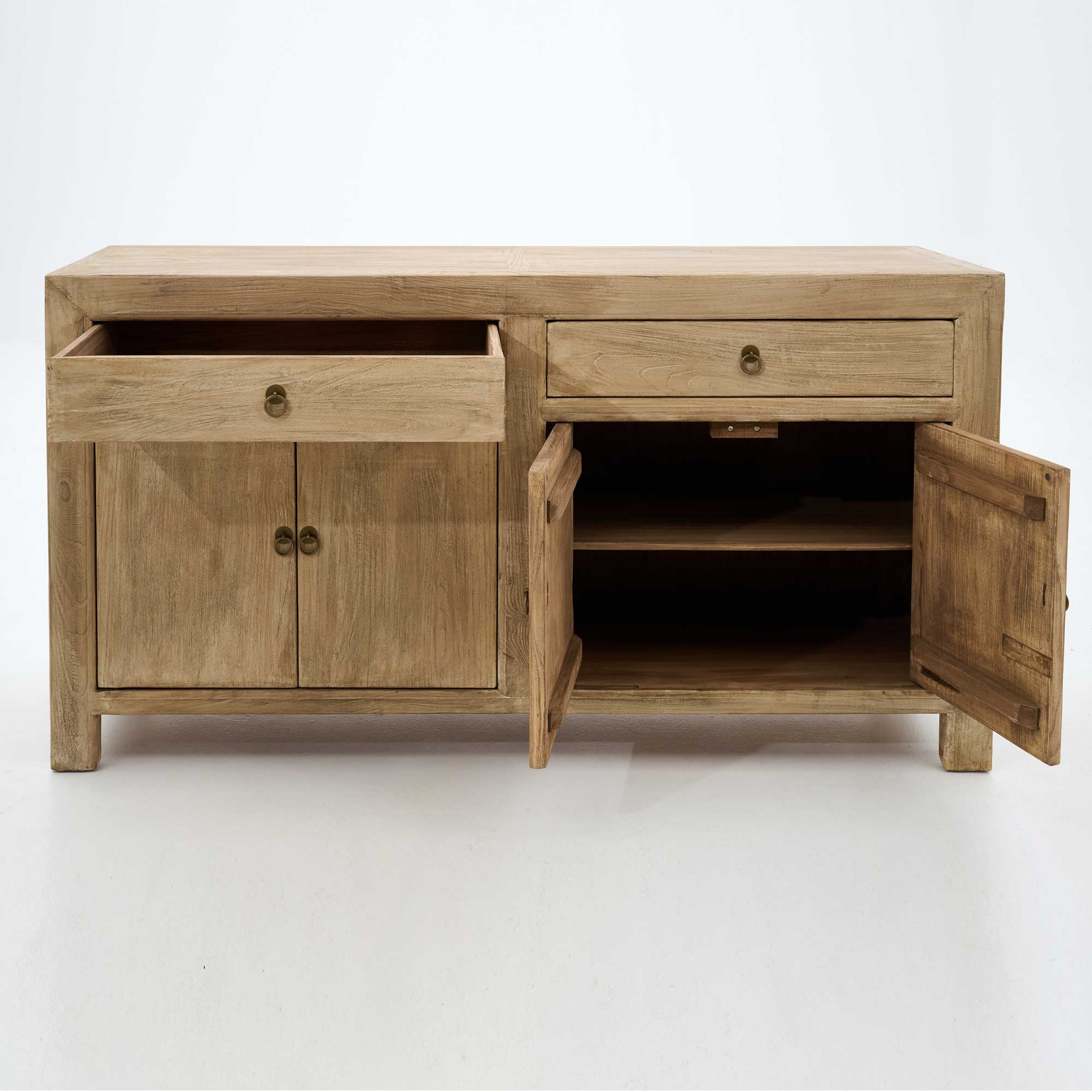 Das praktische Sideboard mit Fächern und 2 Schubladen und dezentem Messingbeschlag.