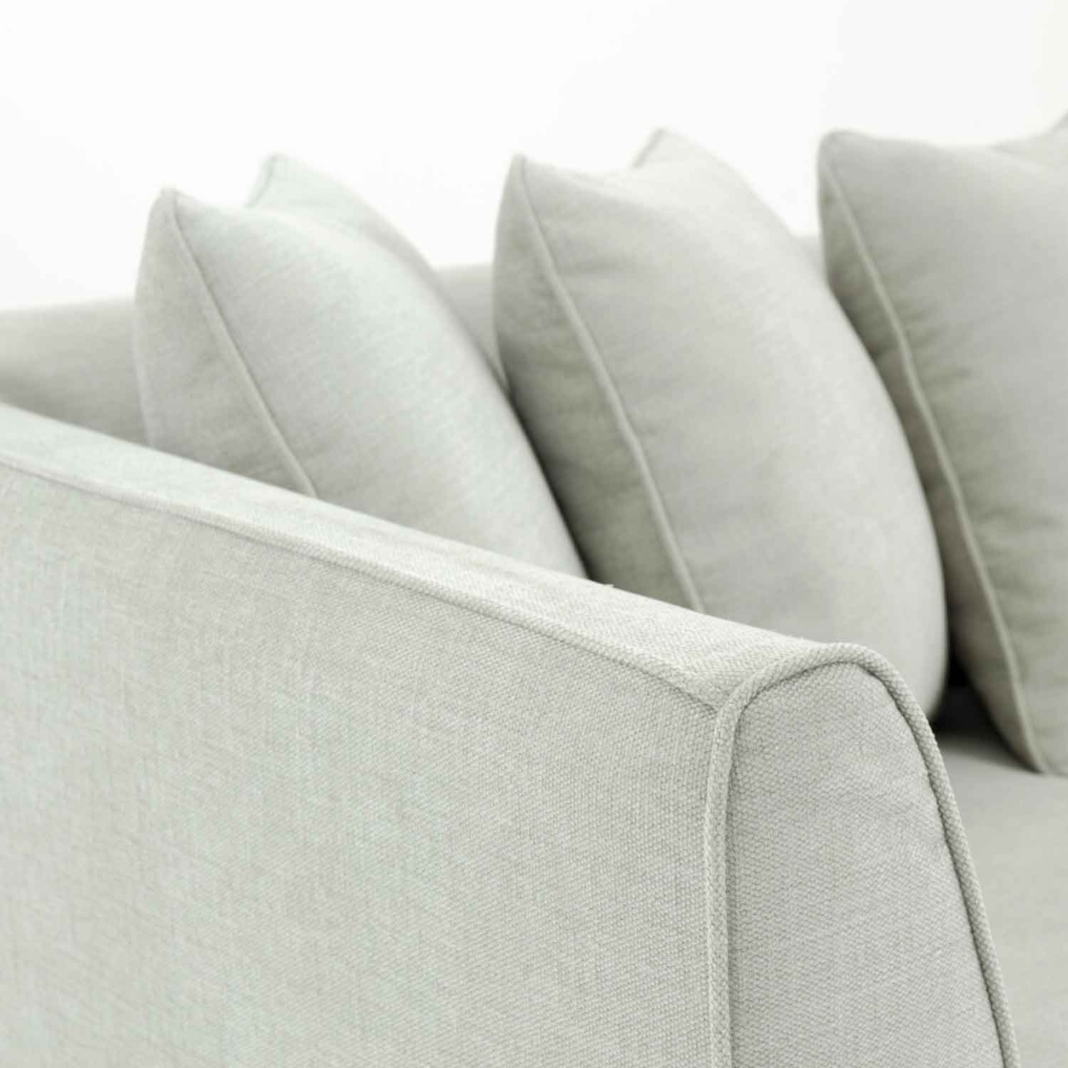 Bezogen mit hochwertigem Leinen präsentiert sich Roxana ruhig, klar und einladend. Die bodennahe Gestaltung ohne sichtbare Füße unterstreicht den gemütlichen Charakter des Sofas und verleiht ihm eine stabile, souveräne Präsenz im Raum.