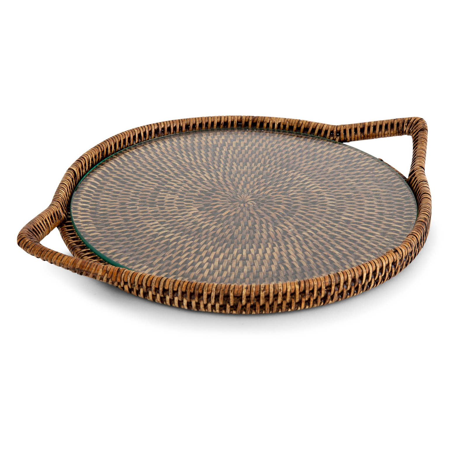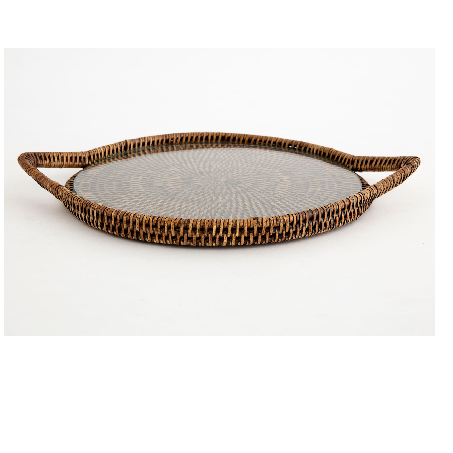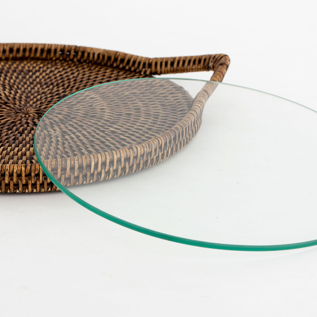 Tablett mit Glaseinsatz - Durchmesser 30 cm (mit Henkeln 39 cm) - Höhe 4 cm
