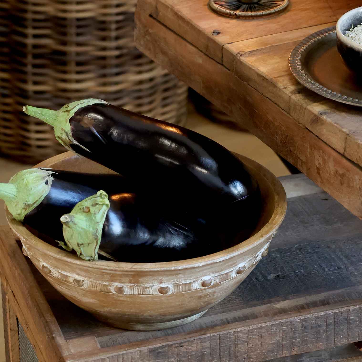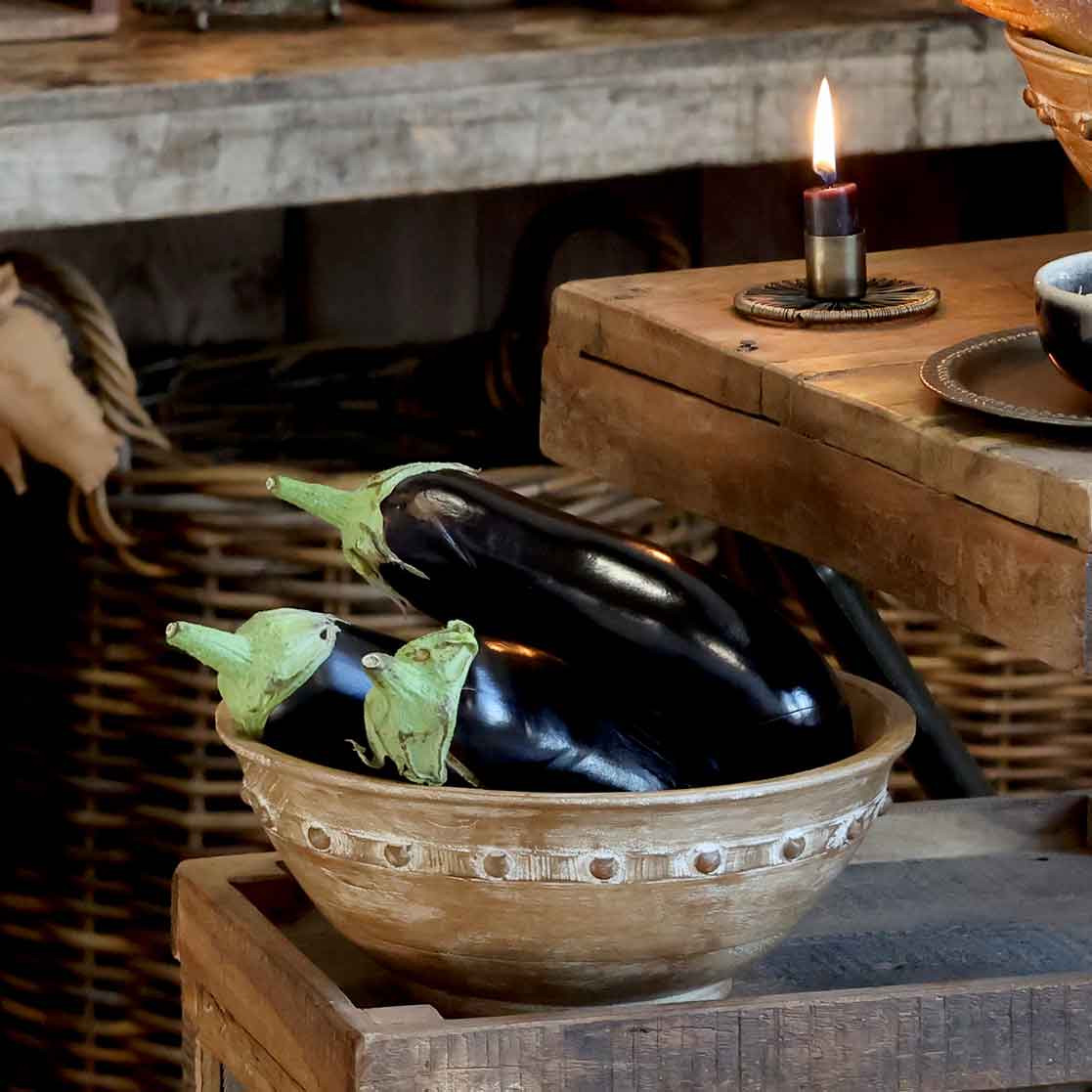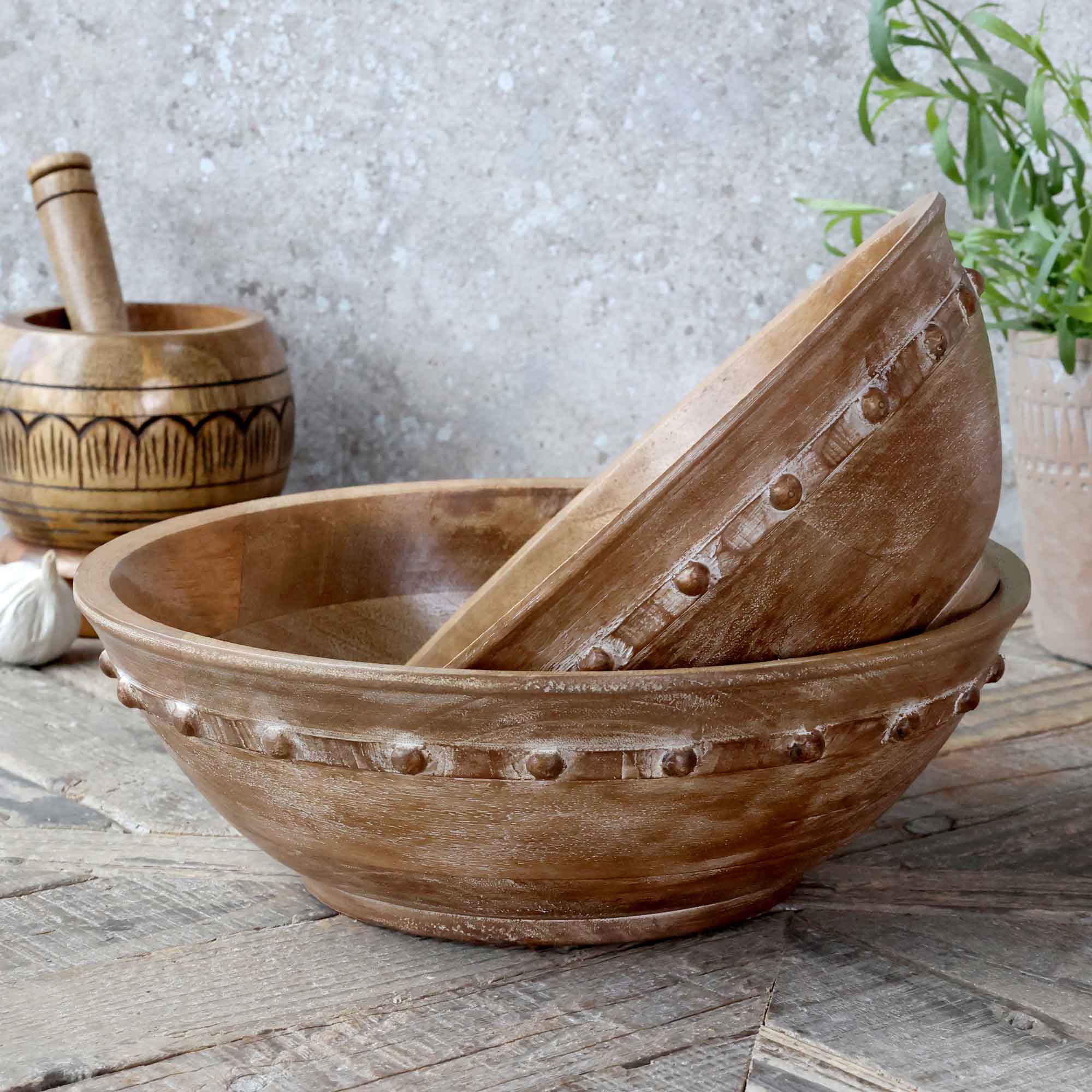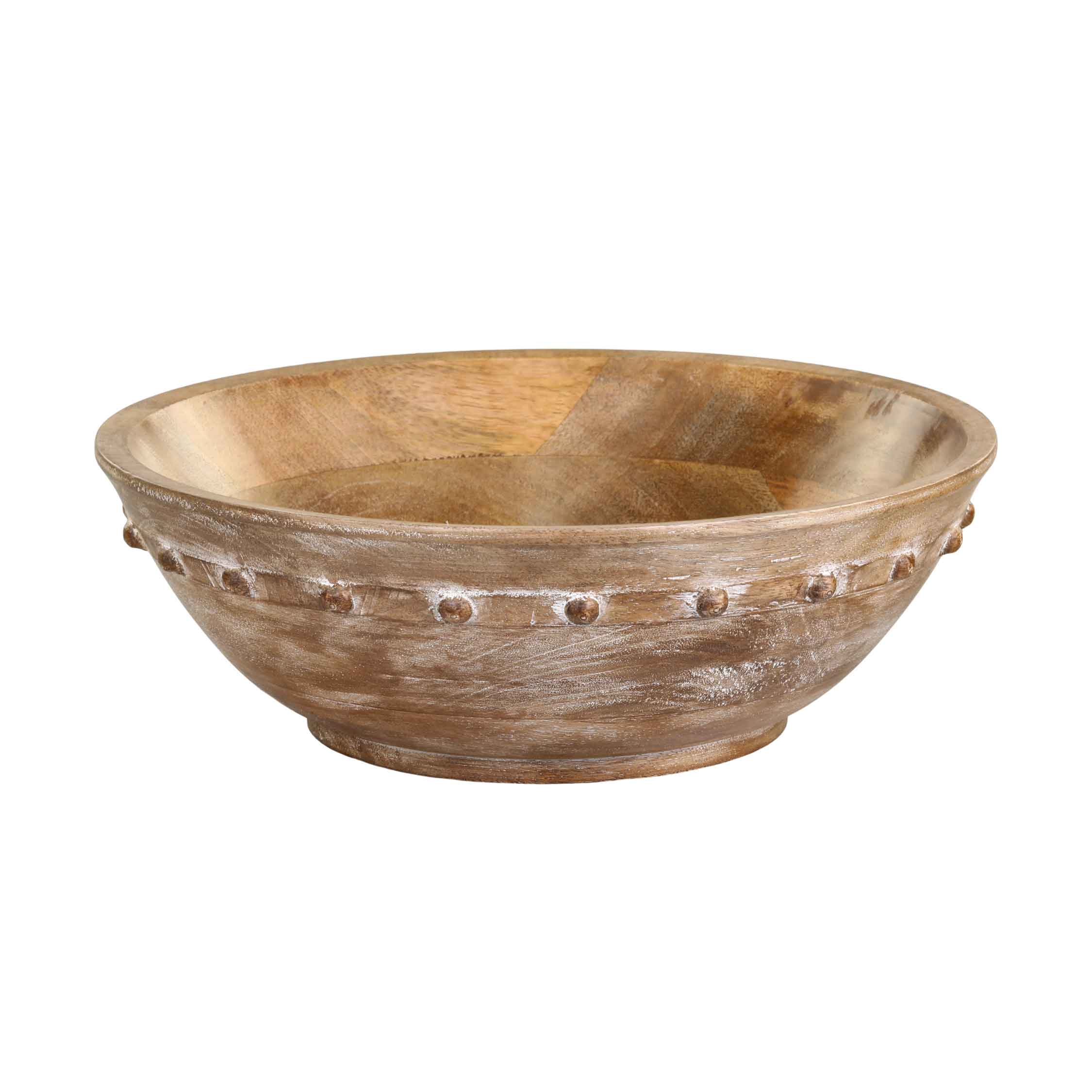 Klassische Holzschüssel aus Mangoholz. Die lebensmittelechte Schale sieht auf dem Esstisch, als Obstschale oder Brotkorb wunderschön aus.